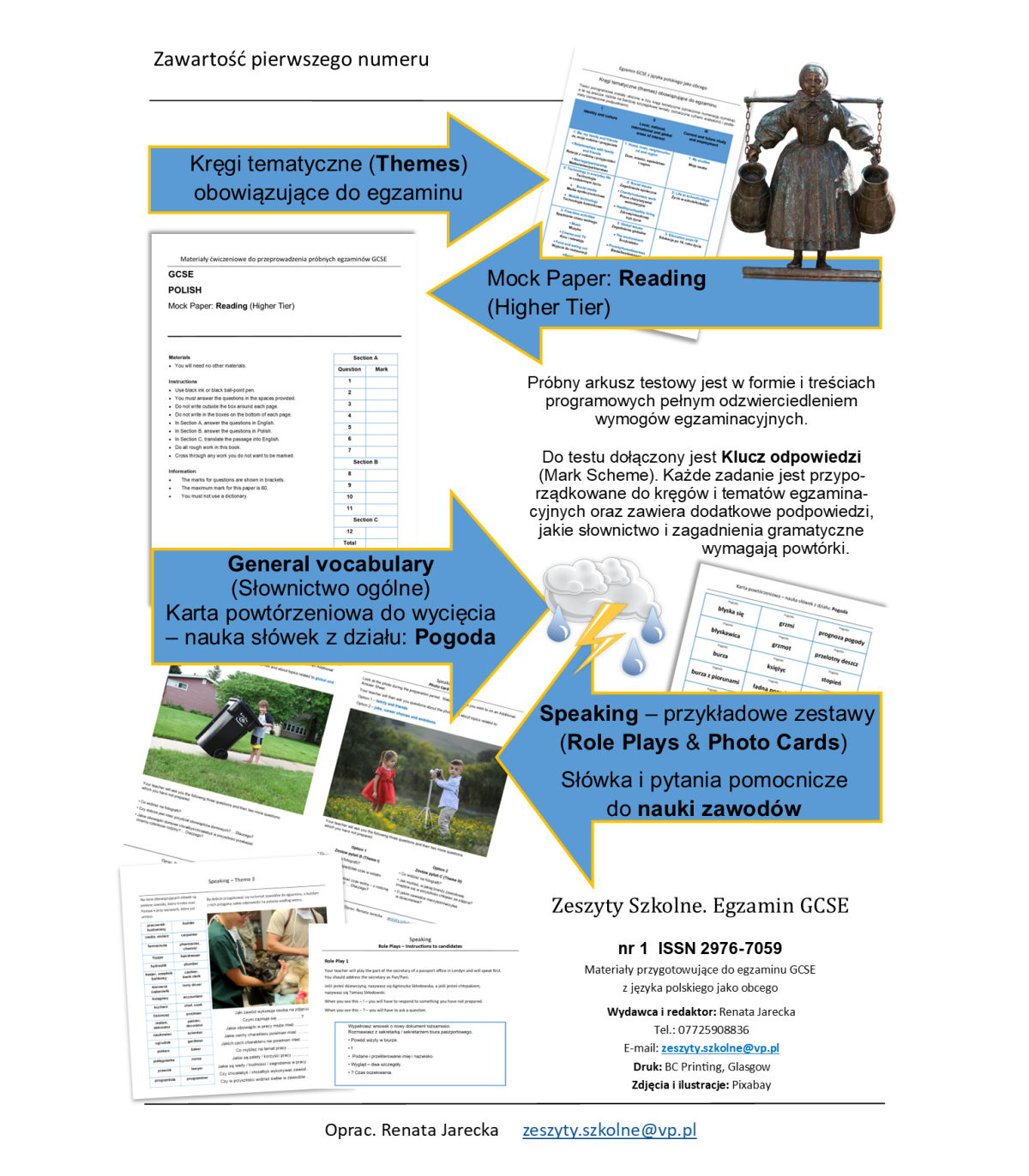 Przydatne dla uczniów będą materiały z nazwami wszystkich zawodów obowiązujących do egzaminu oraz karteczki do wycięcia ze słówkami z działu Pogoda (Weather). Materiały idealne na kwiecień-maj, czyli czas ostatnich powtórek i testów próbnych. Ale także jako materiały dydaktyczne w bieżącym toku realizacji programu GCSE.