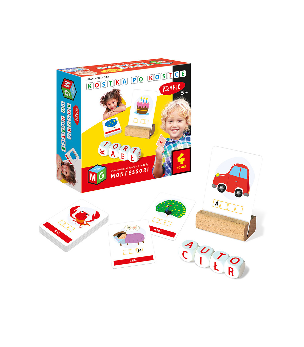 Montessori zabawka edukacyjna. Kostka po kostce, pisanie, 4 kostki