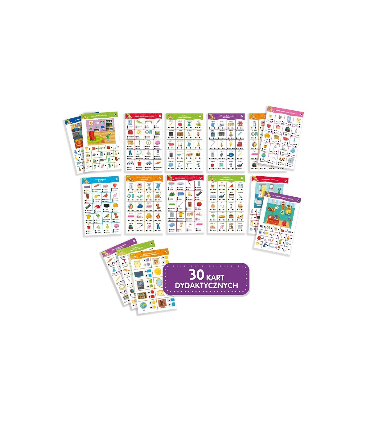 książeczka z kartami edukacyjnymi i instrukcją.