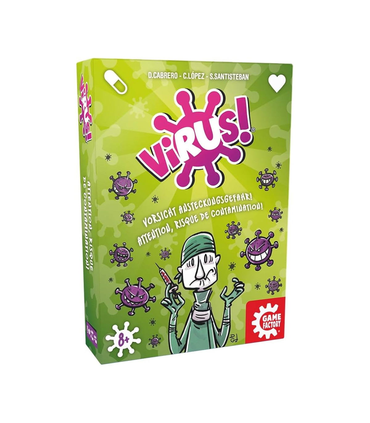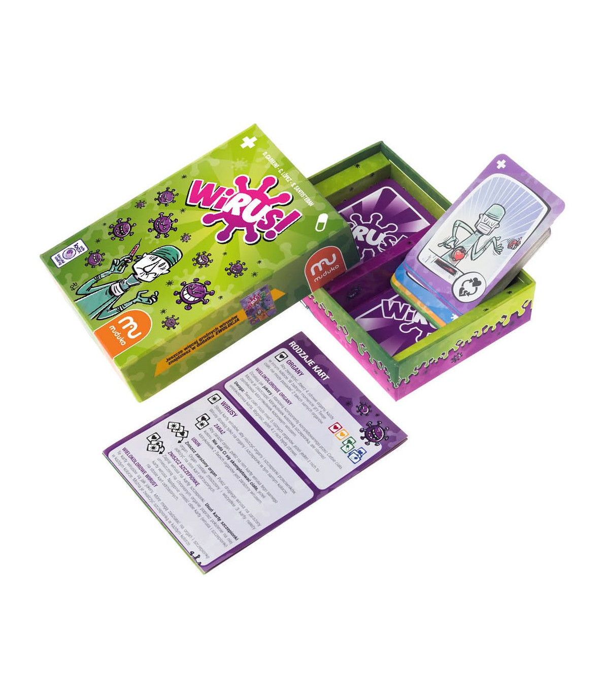Co nas nie zabije, to nas wzmocni! Szybka, dynamiczna rozgrywka Wirusa! sprawi, że - w przeciwieństwie do prawdziwej epidemii - doskonale sprawdzi się na spotkaniach towarzyskich. Będziesz walczyć nie tylko z wirusami, lecz także z pozostałymi graczami usiłującymi ukraść Twoje organy. Nie trać głowy… A właściwie mózgu, serca, żołądka ani wątroby. Aby obronić organizm, wystarczy bystry umysł i dobra strategia. W tej grze wszystkie chwyty są dozwolone!
