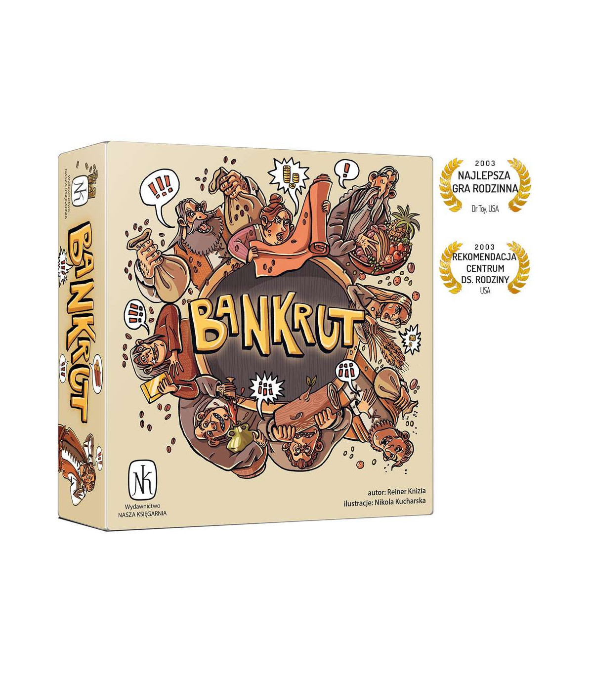 • Jedną losowo wybraną kartę towaru połóż na środku stołu – oznacza ona towar, za który gracze dostaną punkty ujemne! Pozostałe karty rozdaj graczom.