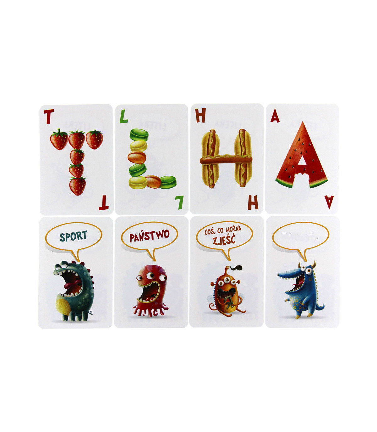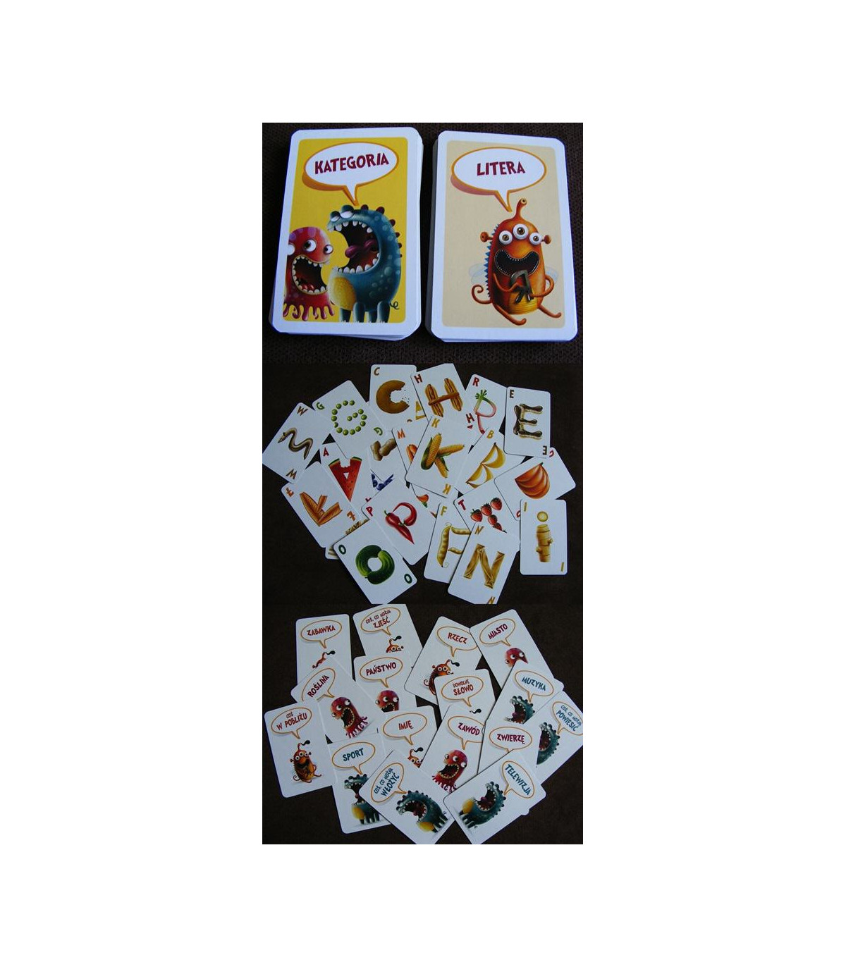 Gracze mają do dyspozycji aż 16 kategorii i pełny alfabet liter, dzięki czemu ta gra nie będzie nudna! Do gry dołączono 10 kart, dzięki którym gracze mogą wymyślić własne kategorie!