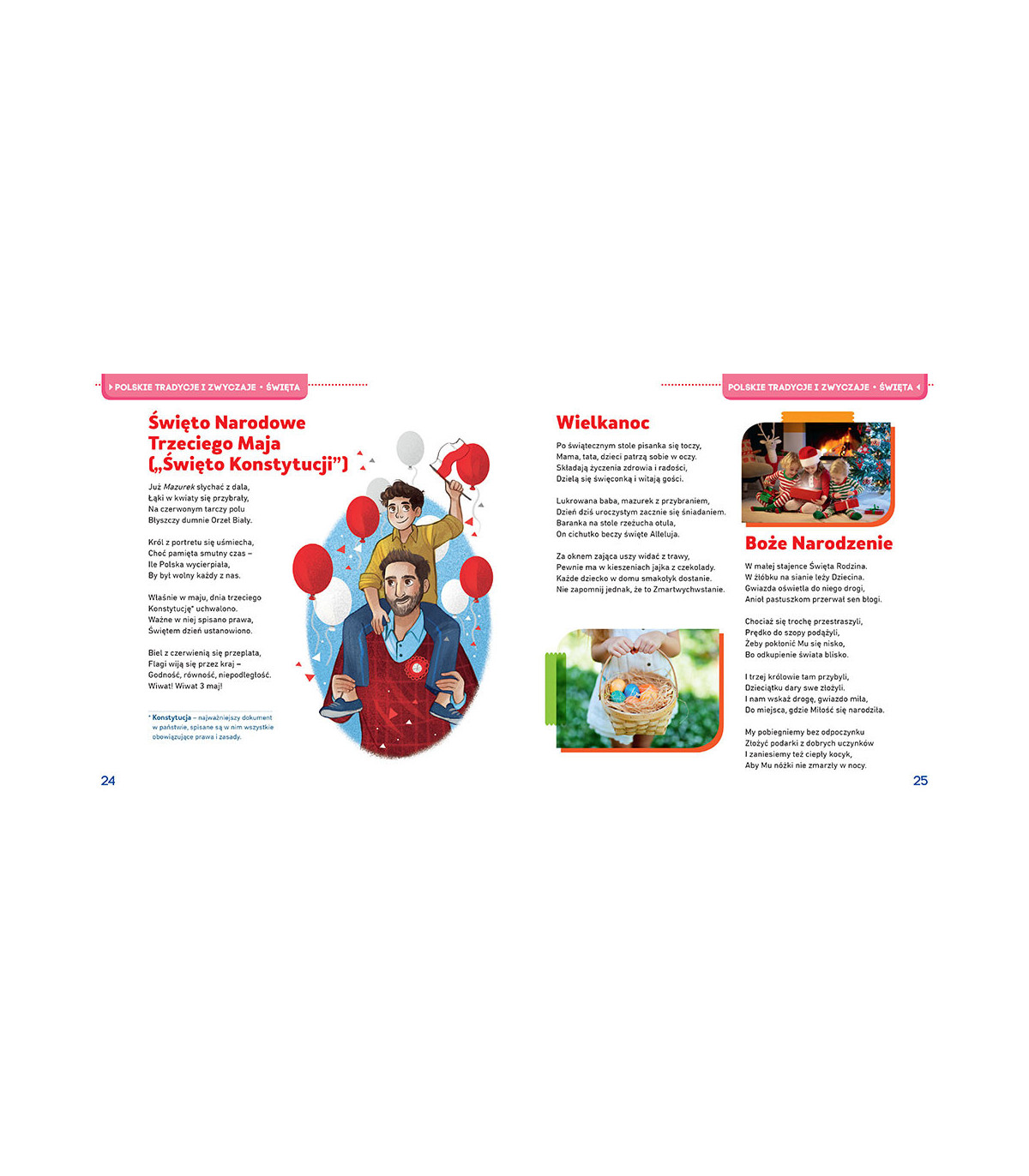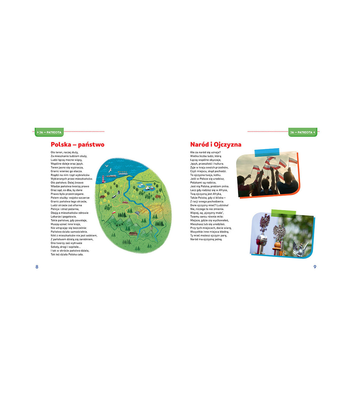 Książka, która będzie idealnym punktem wyjścia do rozmów o Polsce i o tym, co to znaczy być Polakiem. Wielu dorosłych myśli, że te tematy zbyt trudne dla małych dzieci, ale Elementarz patrioty, czyli kocham Polskę dowodzi, że wcale tak nie jest! Zawarte w nim treści przedstawione są za pomocą wesołych, łatwo wpadających w ucho wierszyków, uzupełnione pięknymi ilustracjami, zdjęciami i mapami.