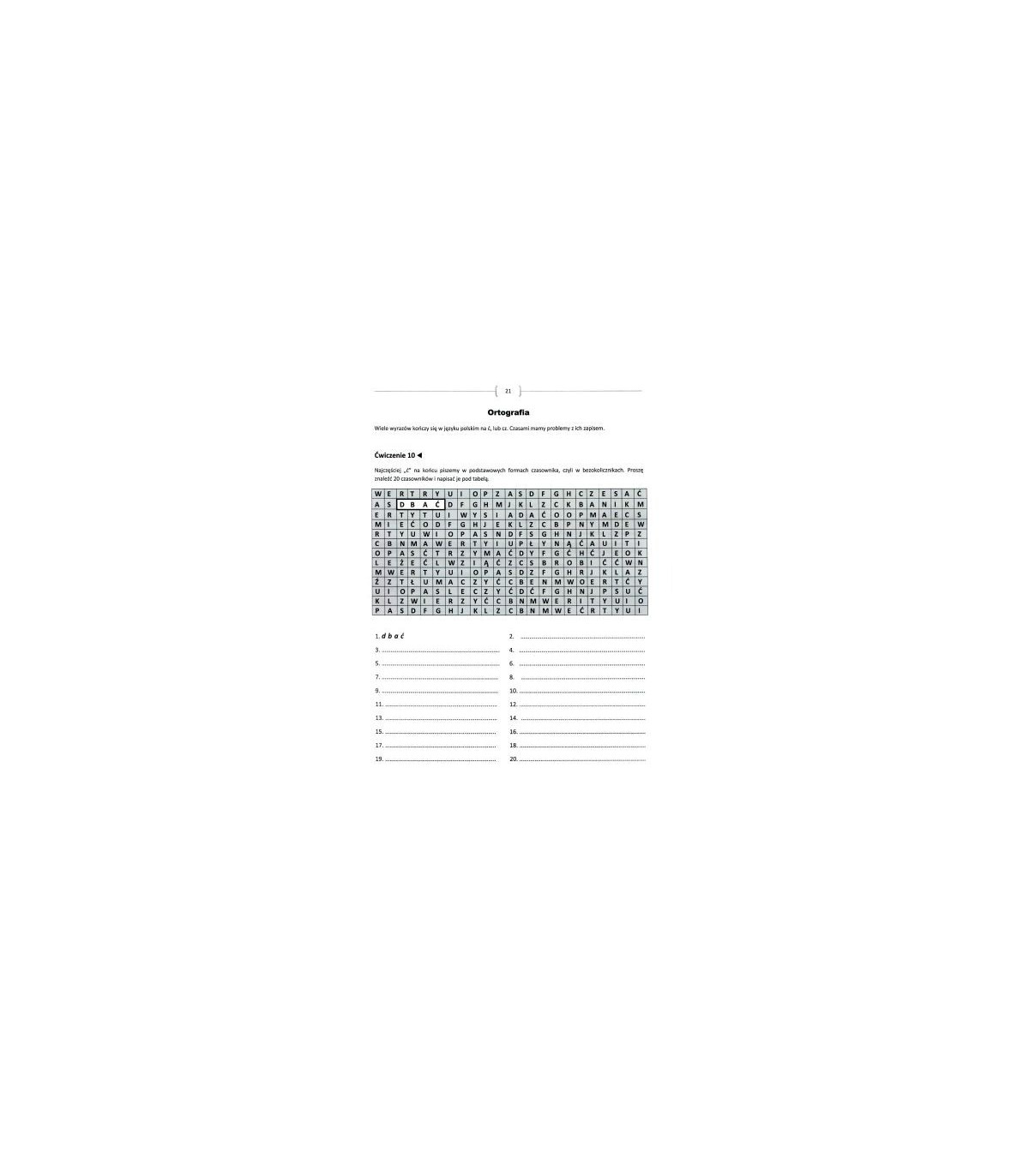 2) od łatwiejszych zadań do trudniejszych, czyli od słów do zdań / tekstów. W uwagach dla nauczycieli, zamieszczonych na końcu każdego ze zbiorów, określone zostały szczegółowe założenia ćwiczeń. Zaproponowane materiały są już wykorzystywane w kilku szkołach sobotnich i spotkały się tam z życzliwym przyjęciem. Wynika to przede wszystkim z faktu, że są pomoce dydaktyczne dostosowane do aktualnego poziomu językowego uczniów.