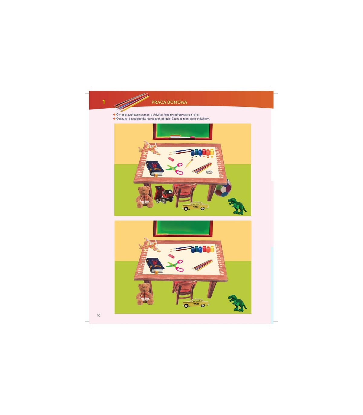 Podręcznik zawiera także zadania domowe, mające na celu utrwalanie poznanych na lekcji słówek, ćwiczeń pamięci w postaci rymowanek i wierszyków oraz ćwiczeń manualnych.