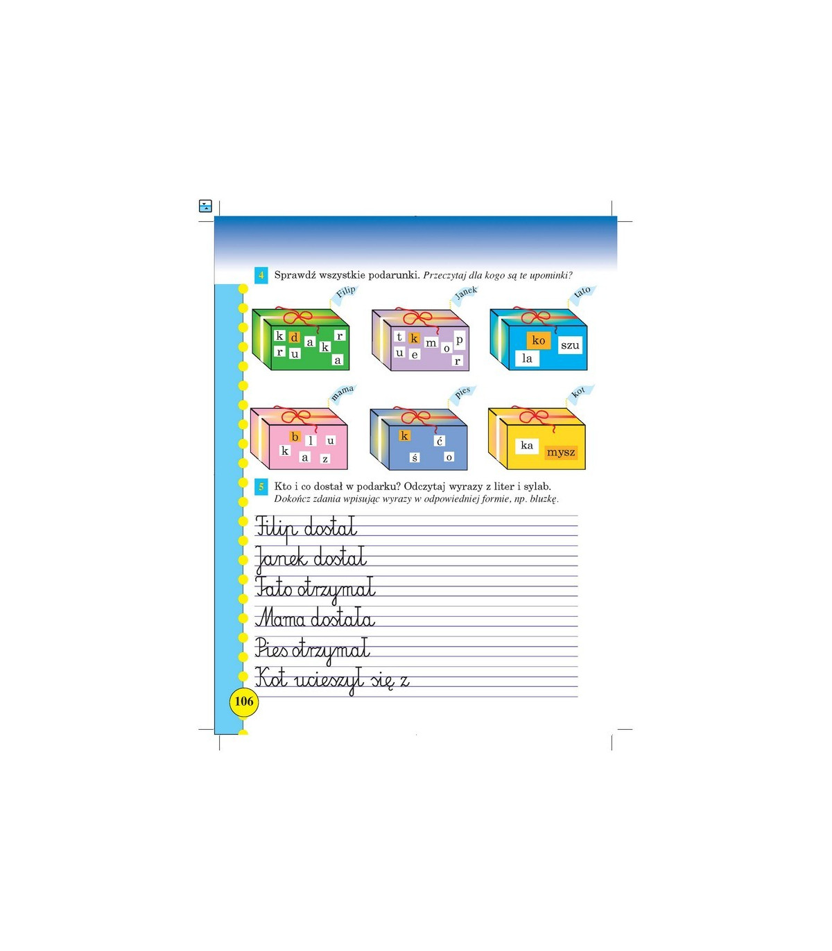 Pierwsze lekcje skupiają się na przypomnieniu wiadomości z klasy pierwszej, porządkują je i systematyzują, kładąc szczególny nacisk na trudniejsze zagadnienia (zmiękczenia, dwuznaki, podstawowe trudności ortograficzne) i kształcą od początku umiejętność poprawnego pisania.
