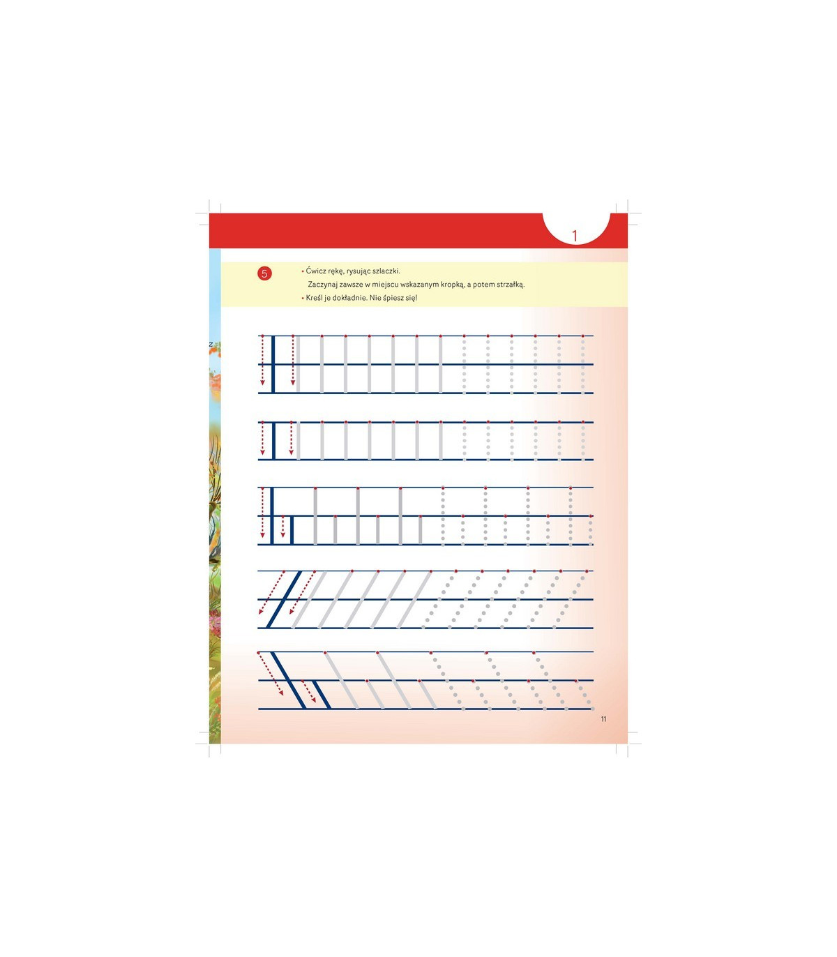 Pierwsza część podręcznika obejmuje takie kręgi tematyczne jak: przybory szkolne, kolory, figury geometryczne i liczby, kształty i wzory, wielkości i przeciwieństwa, orientację przestrzenną, budowę ciała dziecka oraz tematy związane z rodziną i rodzinnym domem.