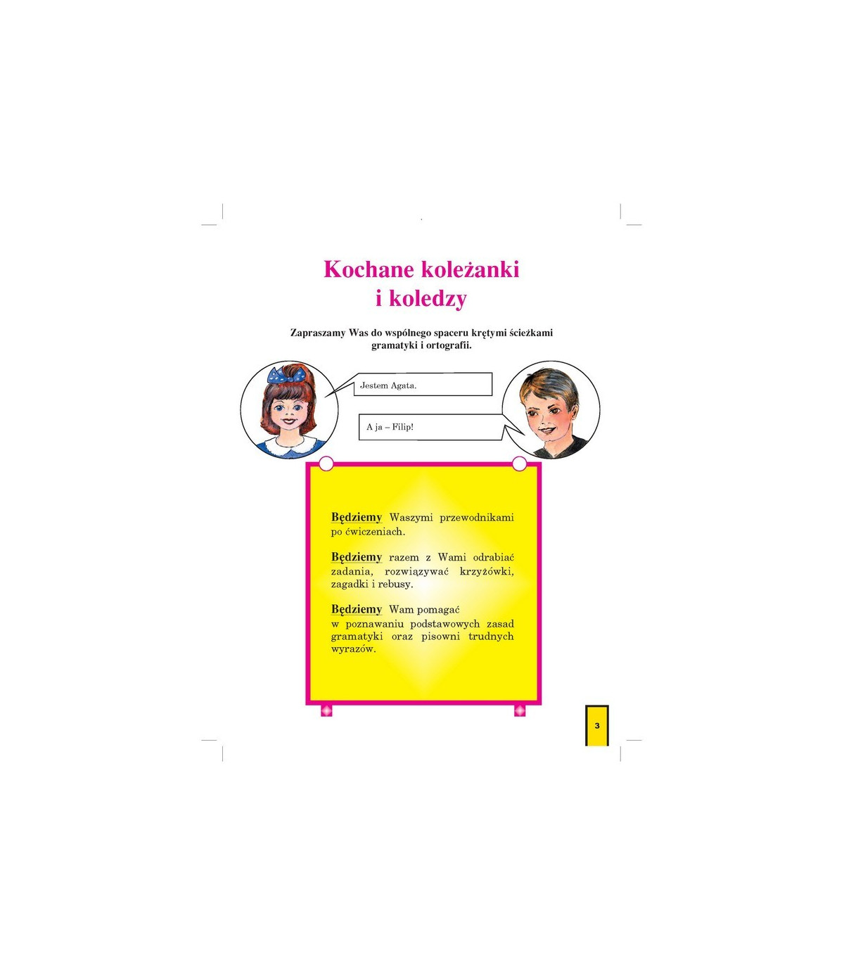 Ćwiczenia dla klasy trzeciej są ściśle związane z Czytanką . W uporządkowany sposób, stopniując trudności, przekazują wiedzę o języku polskim. W myśl zasady nauczania języków obcych, że "gramatyki języka nie da się nauczyć bez odpowiedniej podstawy teoretycznej ", materiał ćwiczeniowy klasy 3 daje solidną bazę do poznania struktur gramatycznych i ortograficznych, możliwych do przyswojenia przez dziecko w tym wieku.