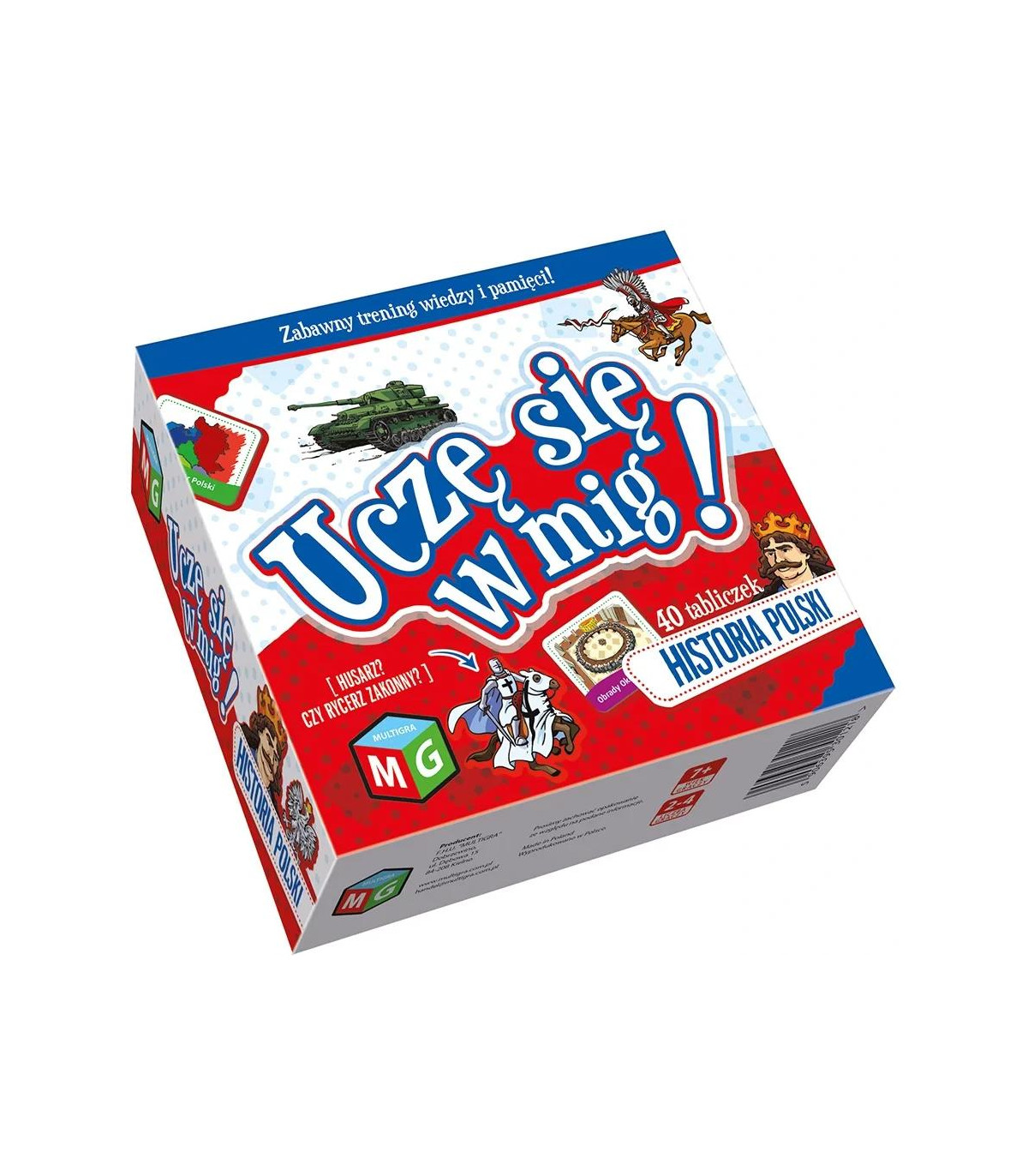 "Historia Polski - Uczę się w mig" wydawnictwa Multigra to świetna gra rozwijająca pamięć oraz pobudzająca zainteresowanie historią Polski. Zaletą gry są przede wszystkim nieskomplikowane reguły. Zwycięzcą zostaje osoba, która najlepiej spośród wszystkich zapamięta położenie dat, par oraz wydarzeń historycznych umieszczonych na kartach.