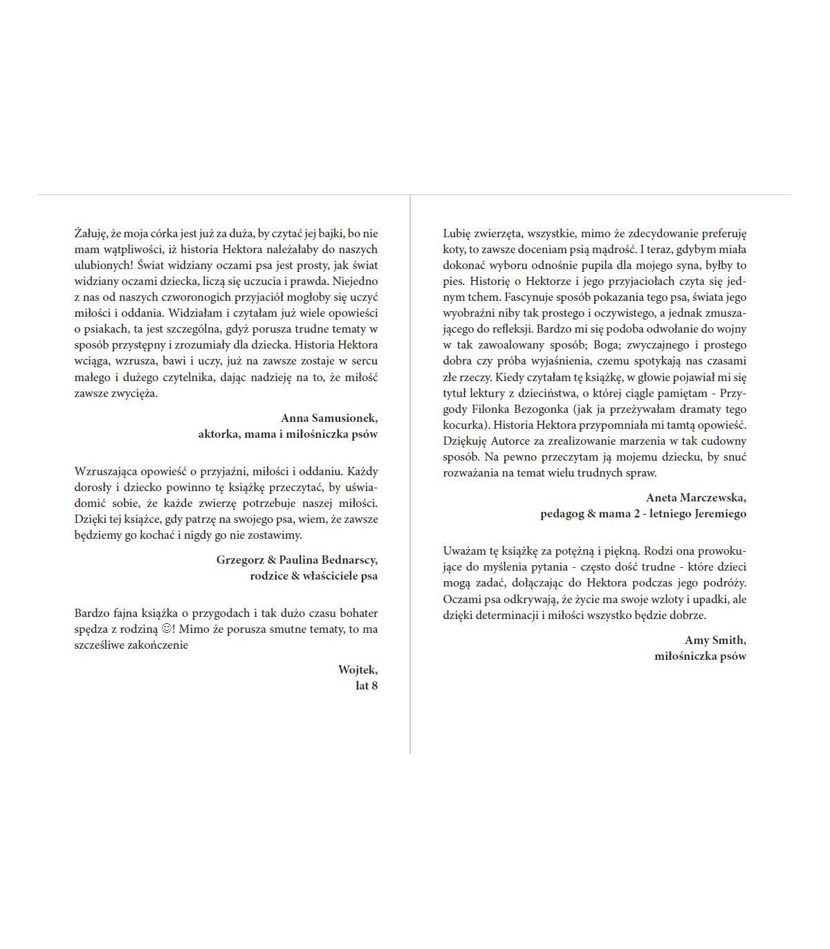"Hektor, psia opowieść idealnie sprawdzi się dla każdego miłośnika zwierząt. To mądra, wartościowa opowieść o psich emocjach z II wojną światową w tle."