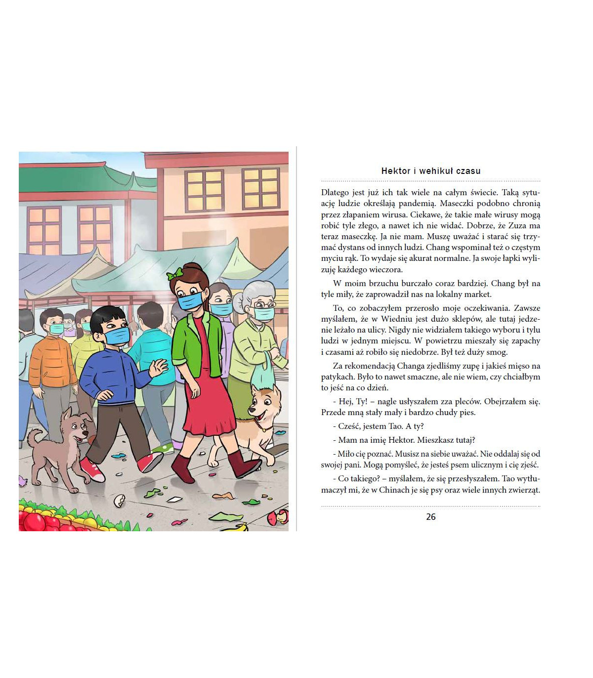 Pies Hektor podróżuje wehikułem czasu do roku 2020. Hektor w swojej podróży dookoła świata jest obserwatorem ważnych wydarzeń i zjawisk m.in. pandemii, zmiany klimatu, brexitu, ruchu BML, wielokulturowości itd. Pies tak jak dziecko zadaje pytania i szuka odpowiedzi by zrozumieć złożoność współczesnego świata. Tematyka książki pomaga rodzicom podjąć rozmowy z dzieckiem na trudne tematy w oparciu o ich własny system wartości i wiedzę. Hektor tak jak dziecko nie ocenia, a jedynie zadaje pytania.