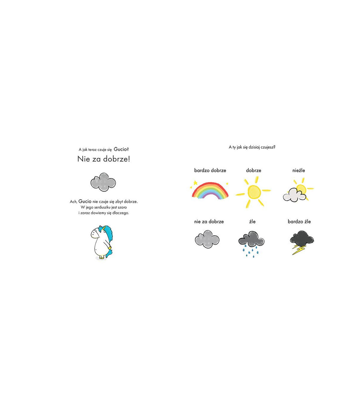 Gucio to mały jednorożec taki jak wszystkie. Ale… Jego tęczowa grzywa zmienia kolor zależnie od tego, co Gucio odczuwa.