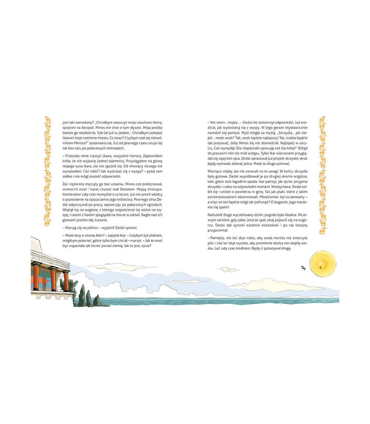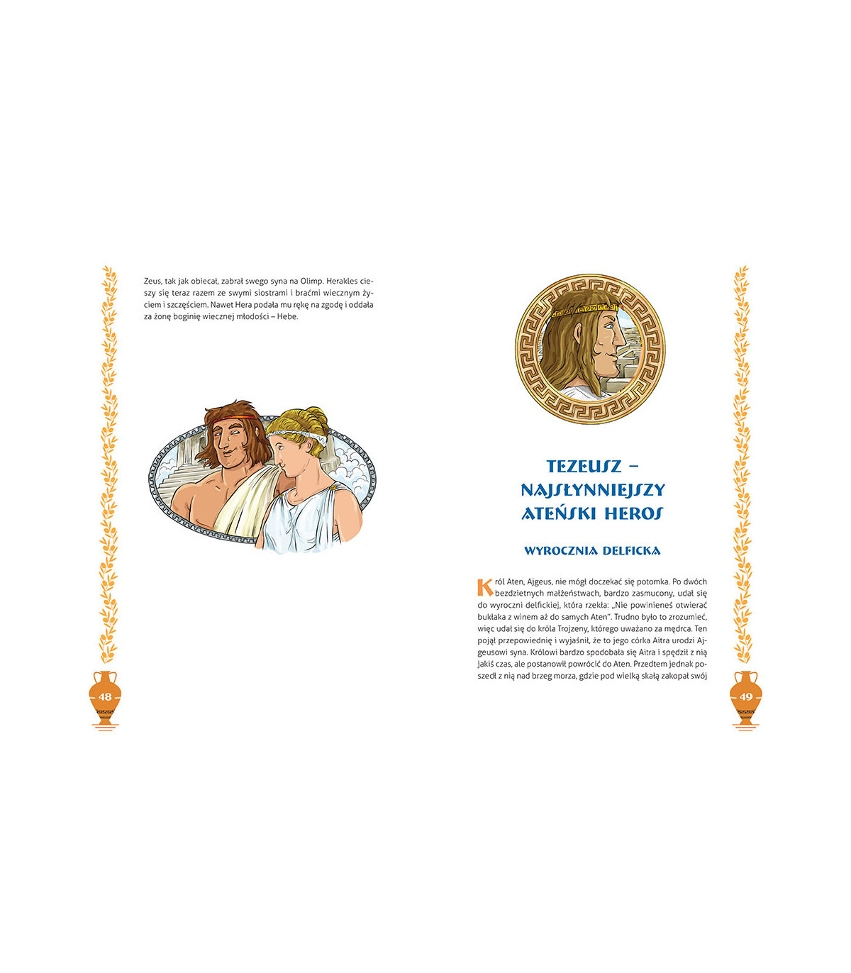 Mity greckie dla dzieci przybliżają najmłodszym czytelnikom świat greckich bogów, herosów, nimf, przedziwnych stworzeń i potworów i jako jedyne są zgodne z podstawą programową. Dzięki tej książce dzieci mają szansę odbyć fascynującą podróż do starożytnych czasów, poznać panteon bogów greckich, zwiedzić Olimp, poznać historię Heraklesa, Tezeusza, śledzić tułaczkę Odyseusza. Napisana w przystępny sposób książka została wzbogacona licznymi ciekawostkami i informacjami o bogach, bohaterach, ich perypetiach oraz o związkach frazeologicznych związanych z mitologią.