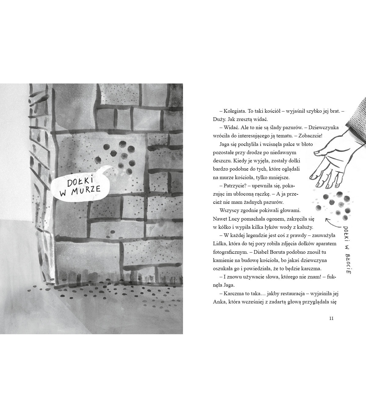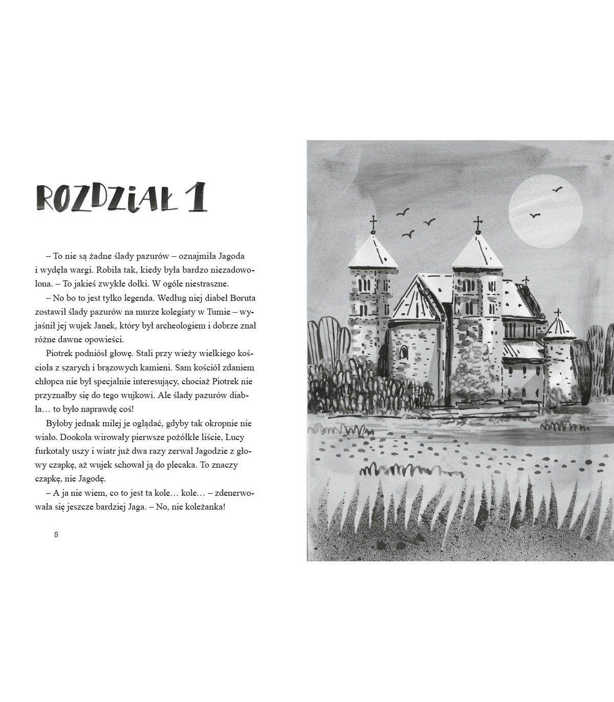Szósty tom nowej serii detektywistycznej o śledczych z Tajemniczej 5! Anka, Piotrek i Jaga mieli dotąd wiele niesamowitych przygód. Teraz jednak dołącza do nich Lidka, która uczy się w klasie dziennikarskiej i pisze serię reportaży z miejsc, w których straszy. Tym razem czwórka detektywów jedzie do muzeum na zamku w Łęczycy – bo właśnie tam zgromadzono największy w Polsce zbiór wizerunków diabła Boruty. W pewnej chwili jednak ekscytujące nocne zwiedzanie przerywa uderzenie pioruna. Gasną światła i w tajemniczy sposób znika bezcenna moneta. To wygląda na diabelską sprawkę…