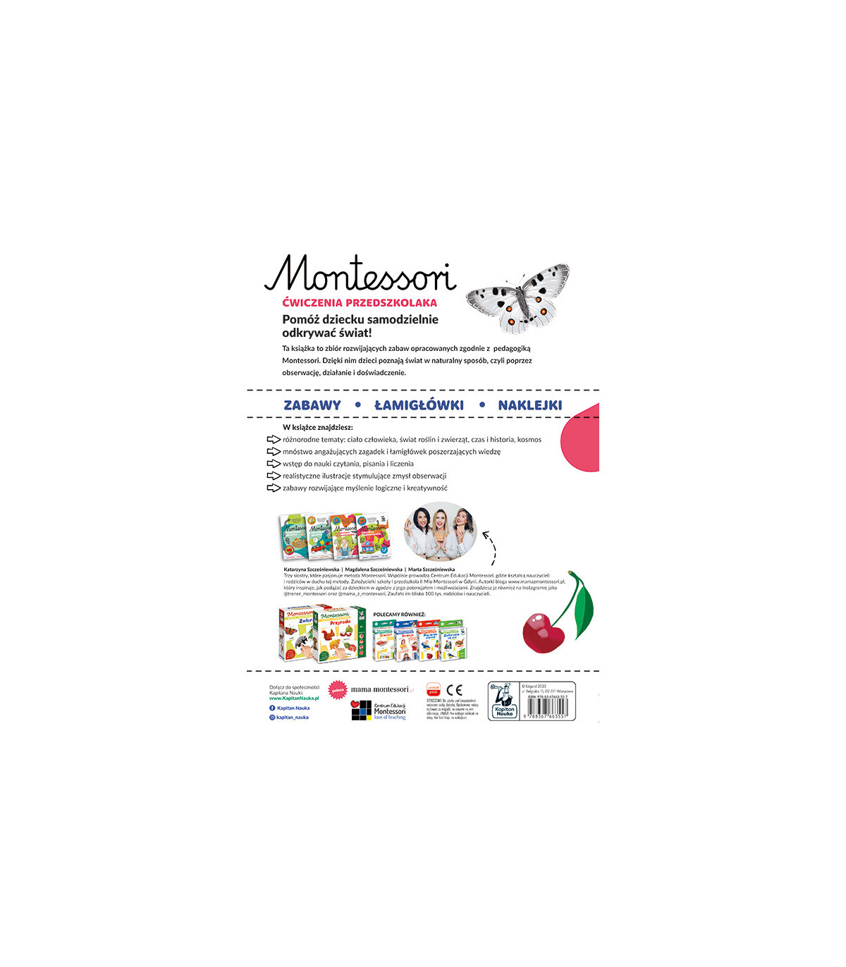 Zabawy zostały tak opracowane, aby zachęcić dziecko do zadawania pytań, obserwowania i eksperymentowania. Zadania łączą łamigłówki logiczne z pomysłami na wykorzystanie różnorodnych technik plastyczno-sensorycznych. Dzięki temu przedszkolak może rozwijać wiedzę w najbardziej naturalny sposób, czyli poprzez obserwację, działanie i doświadczenie. Przy okazji trenuje pamięć, koncentrację i sprawność manualną, wzbogaca słownictwo, stawia pierwsze kroki w nauce czytania, pisania i liczenia oraz uczy się uważności na otaczający świat dzięki wykorzystaniu metody Montessori w praktyce.