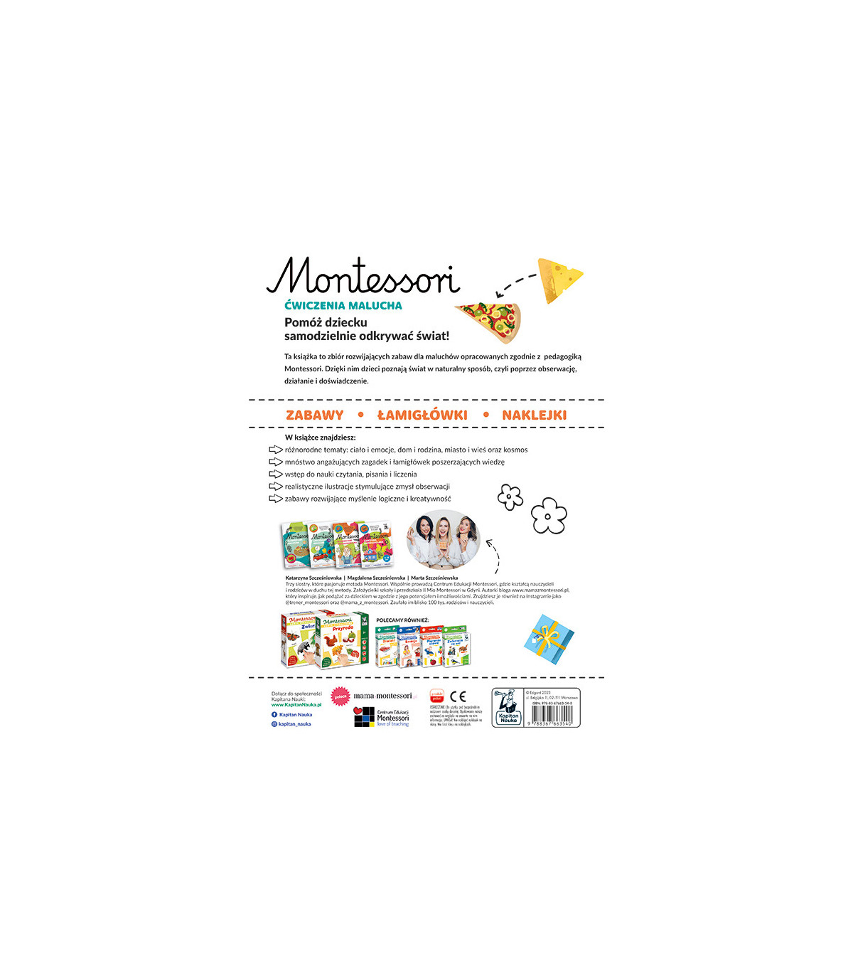 Zbiór rozwijających zabaw i aktywności przygotowanych w duchu metody Montessori. Książka zachęca przedszkolaki do poznawania świata w domu i w otoczeniu przyrody.