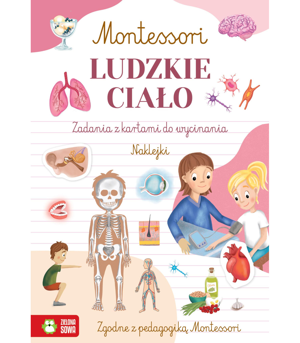 Ludzkie ciało. Montessori, zadania z kartami do wycinania, naklejki