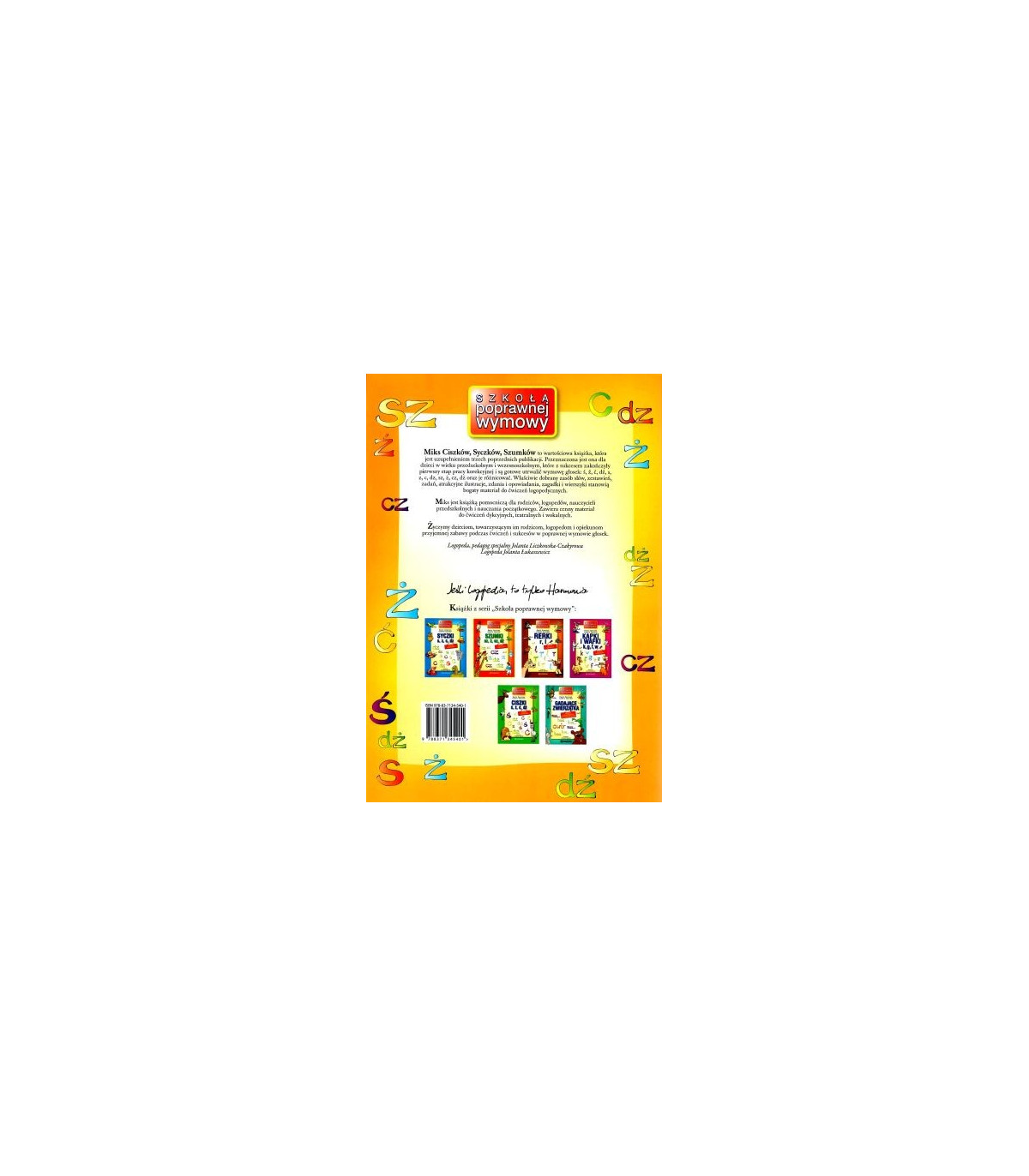 „Miks ciszków, syczków, szumków” to kolejna książka z serii „Szkoła poprawnej wymowy”. Przeznaczona jest dla dzieci w wieku od 3 lat, które seplenią. Zawiera wiele ćwiczeń wymagających od dziecka samodzielnego działania: rysunki, wycinanki, zaznaczanie ilości powtórzeń. Zadania te są dla malucha zabawą, a jednocześnie pomagają w nauce poprawnej artykulacji i zwiększają motywację do dalszej pracy.