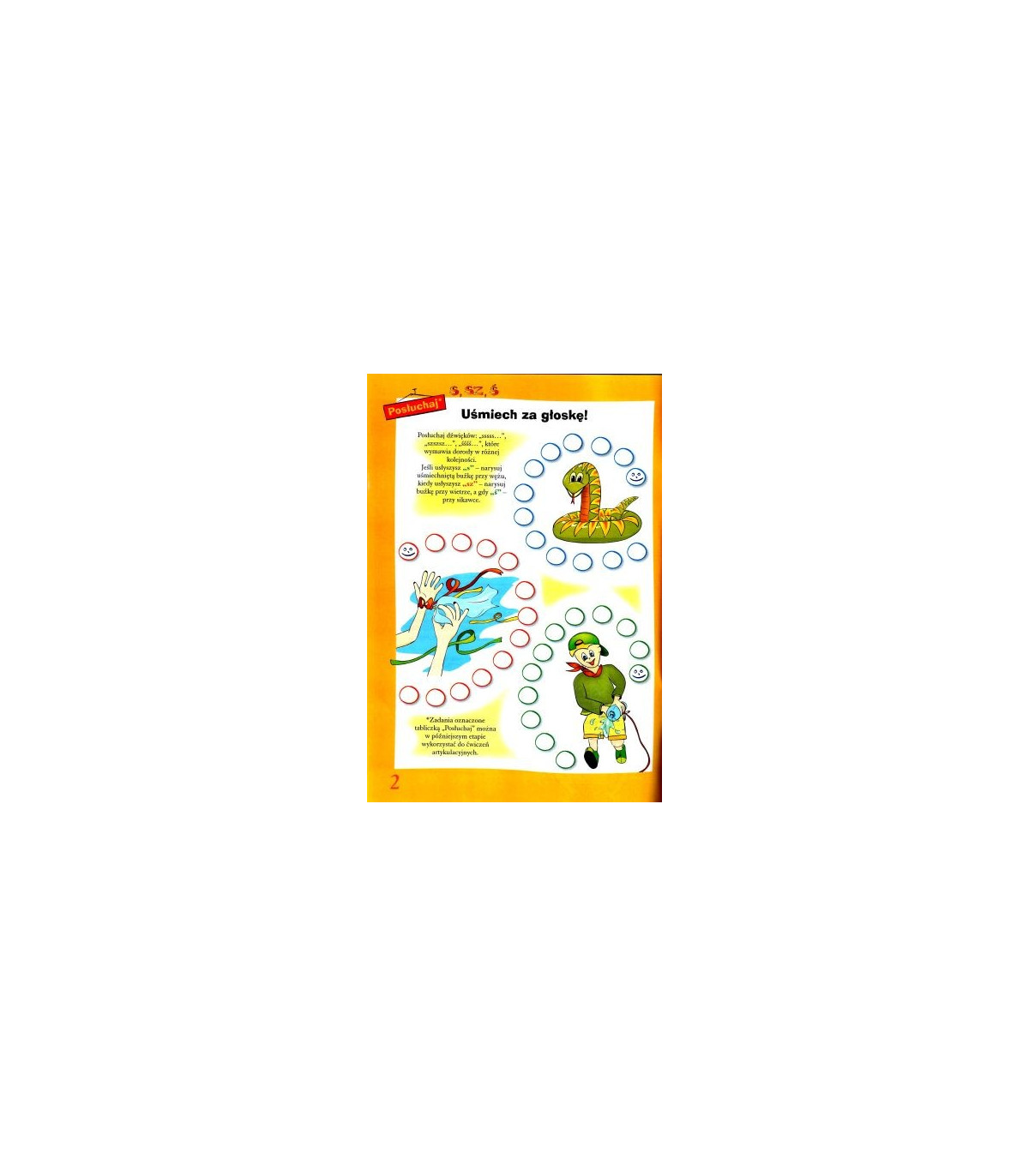 Zadania ułożone są według zasad terapii logopedycznej: ćwiczenie wywołanej głoski następuje w sylabach, grupach spółgłoskowych, wyrazach i zdaniach, na końcu zaś w mowie spontanicznej dziecka. Ilustracje są kolorowe, zabawne i czasem zaskakujące, dzięki czemu umilają dziecku terapię.