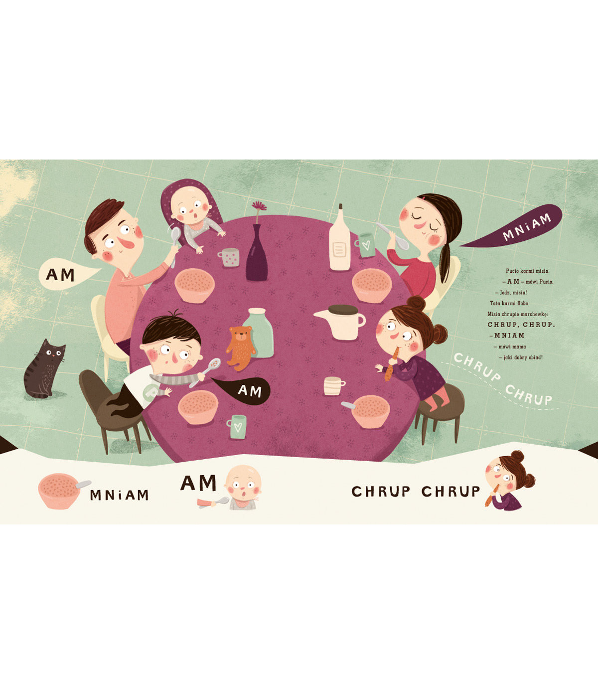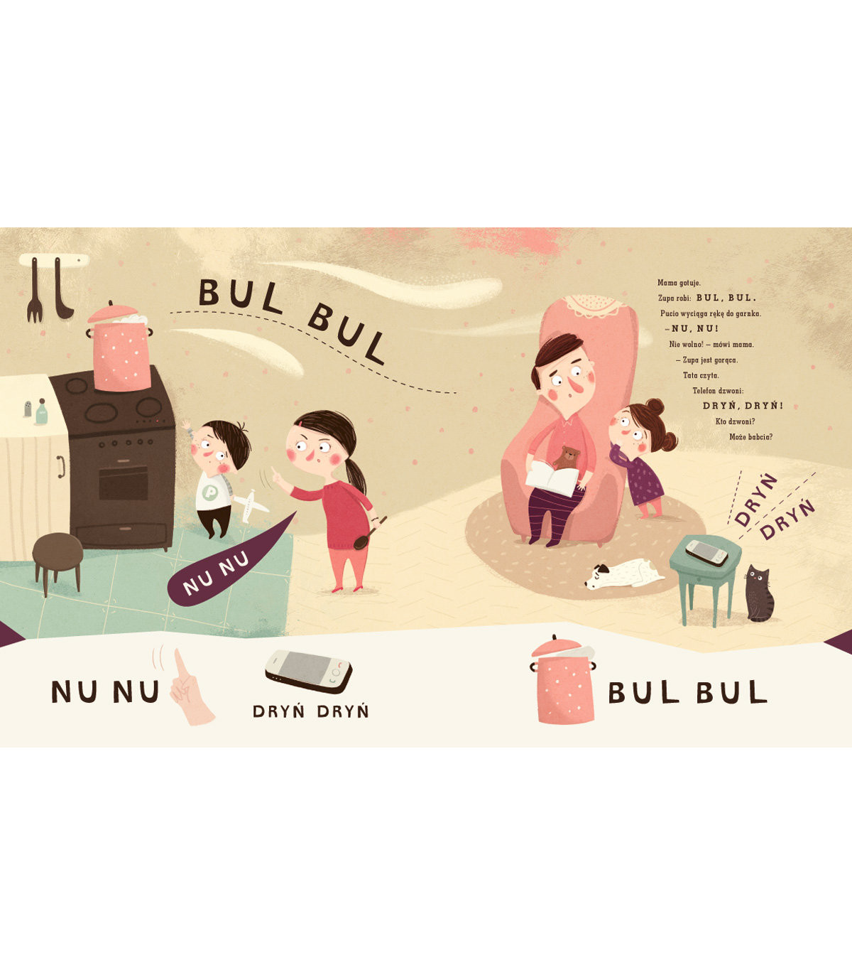 Celowo prosta w formie i wzbogacona pięknymi ilustracjami, zachęcającymi do nazywania obiektów i powtarzania dźwięków, w naturalny sposób wspiera rozwój mowy dziecka.