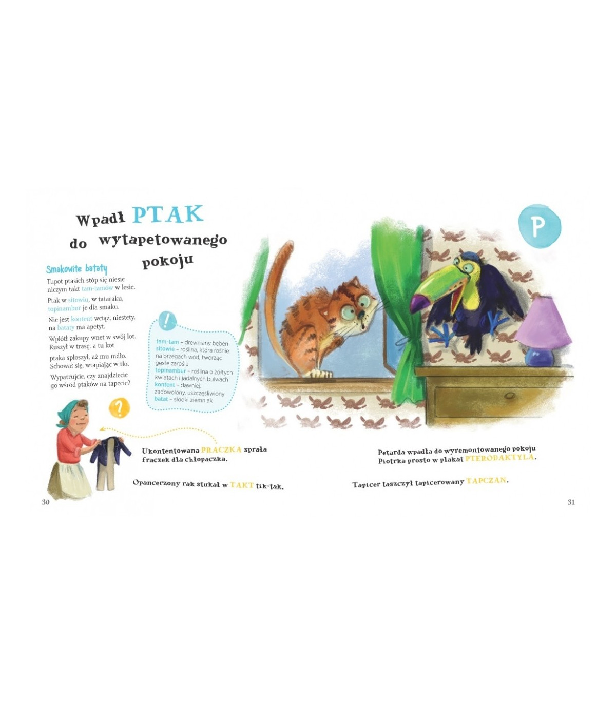 Łamańce językowe są tu dowcipnie zilustrowane.