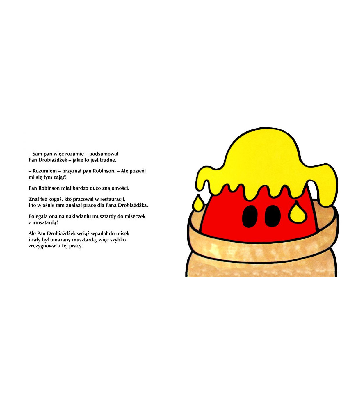 Pan Drobiażdżek to najdrobniejsza osóbka, jaką zobaczycie. Albo w ogóle nie uda wam się go zobaczyć, bo taki jest malutki! Nie większy od pinezki! A to naprawdę bardzo niewiele, jeśli się nad tym dobrze zastanowić. Patrzcie uważnie pod nogi, żeby go przypadkiem nie zdeptać!