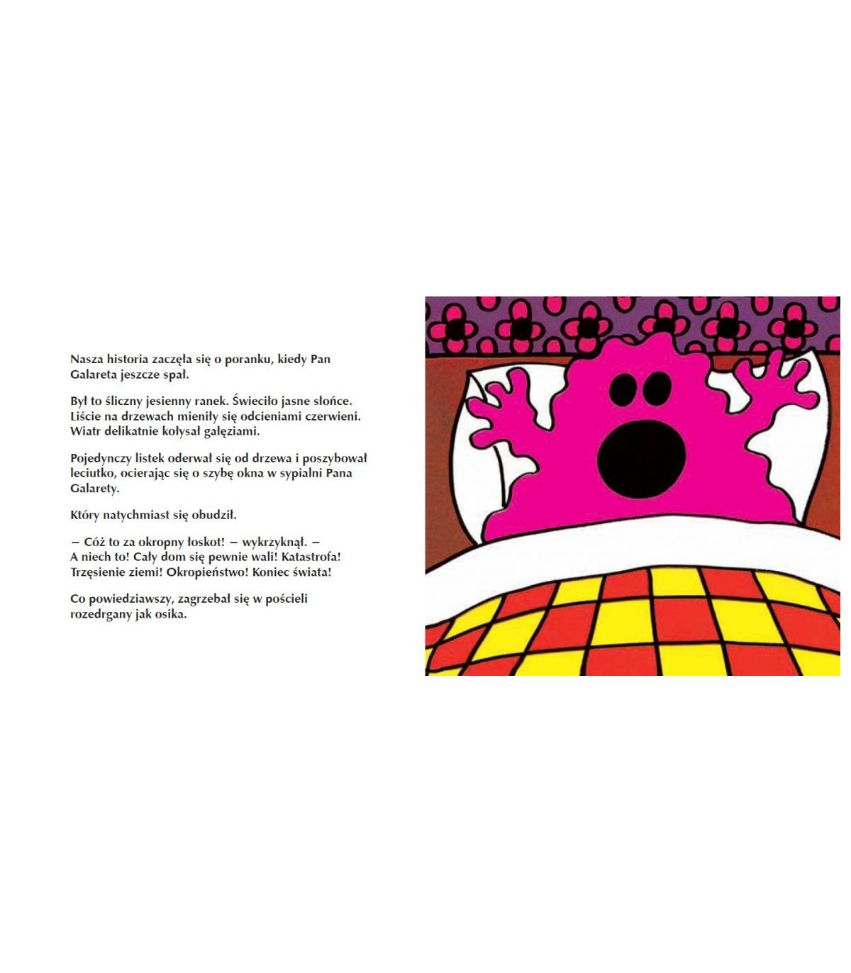 Pan Galareta boi się wszystkiego: liści, robaków, nawet własnych płatków kukurydzianych Ale pewnego dnia spotyka kogoś, kto uczy go, że świat nie jest taki straszny, Pan Galaretka musi tylko pomyśleć zanim zareaguje przesadnie.