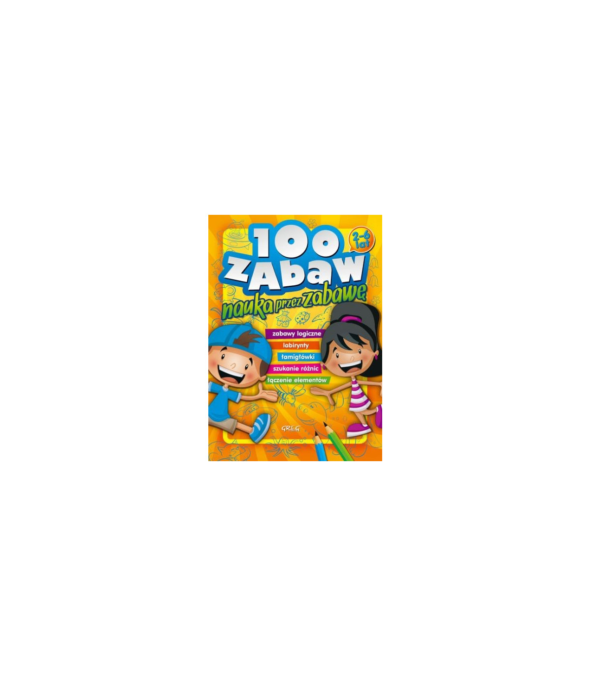100 zabaw to doskonała pozycja dla dzieci w wieku 2-6 lat. Zadanka ułożone są tematycznie - w poszczególnych działach znajdują się labirynty, łamigłówki, łączenie elementów, szukanie różnic, zabawy logiczne. Wszystkie zadania ułożone są w kolejności od najprostszych do najtrudniejszych. Ponadto przy każdym zadaniu jest skala trudności, która określa, jak trudne jest to zadanko.