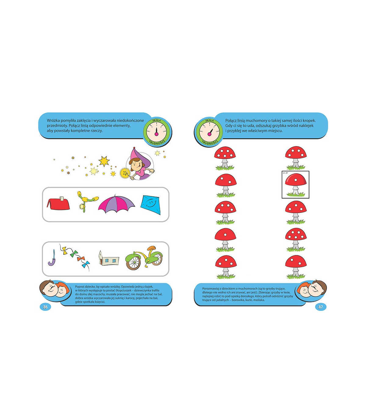 Ponad 100 stron wesołej zabawy zapewni każdemu dziecku rozrywkę na długi czas. Zadanka są edukacyjne, rozwijają zdolności manualne, spostrzegawczość, rozwijają myślenie logiczne - dzięki czemu dziecko uczy się poprzez zabawę!