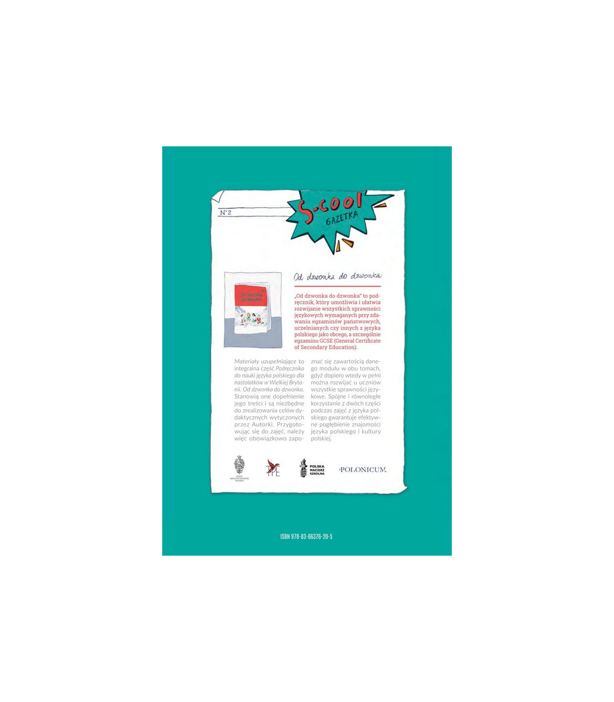 Materiały uzupełniające to integralna część Podręcznika do nauki języka polskiego dla nastolatków w Wielkiej Brytanii. Od dzwonka do dzwonka. Stanowią one dopełnienie jego treści i są niezbędne do zrealizowania celów dydaktycznych wytyczonych przez Autorki.