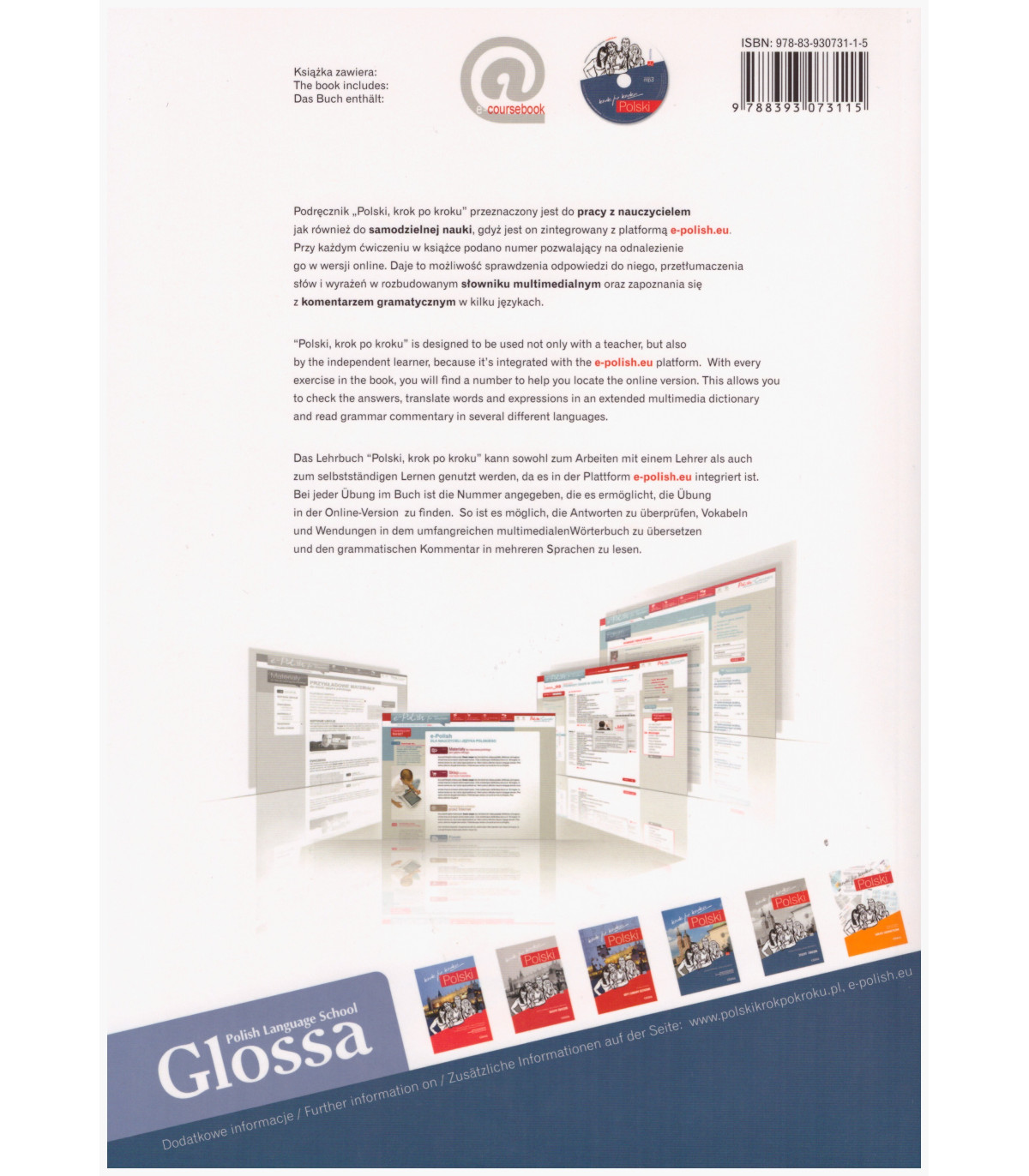Seria „POLSKI krok po kroku” od samego początku zanurza studentów w języku polskim i mobilizuje do mówienia. Jej atutem są przejrzyste tabele gramatyczne, intuicyjne wyjaśnianie zagadnień gramatycznych w dialogach, bogactwo leksyki oraz dobra jakość i naturalne brzmienie nagrań. Atrakcyjna szata graficzna, pomyślana została tak, by nie tyle zdobić, co stwarzać nowe okazje do mówienia. Seria doskonale sprawdza się tak w grupach, jak i na zajęciach indywidualnych. Z powodzeniem może być wykorzystywana na kursach intensywnych w szkołach językowych, a także na kursach semestralnych prowadzonych na uczelniach.