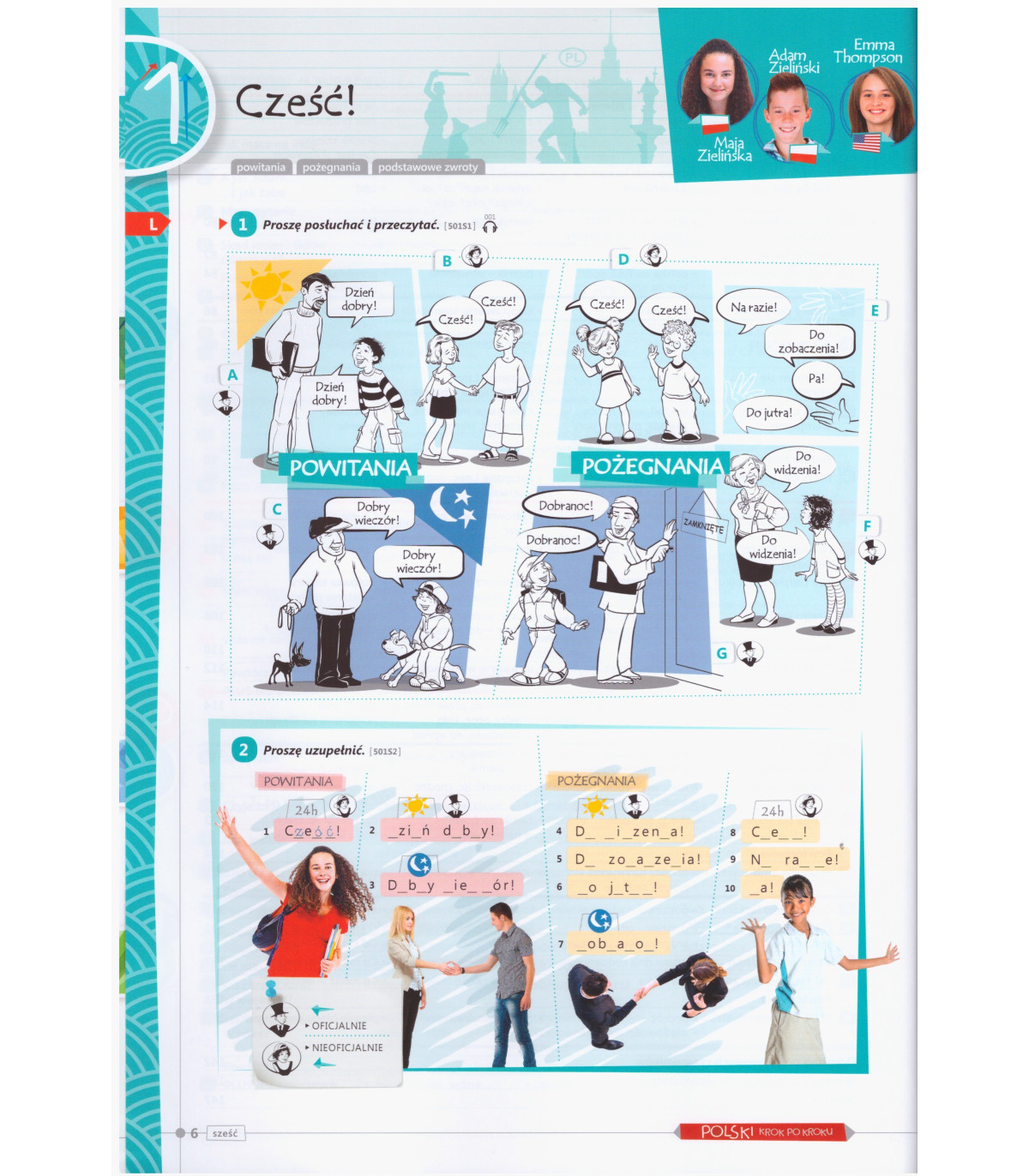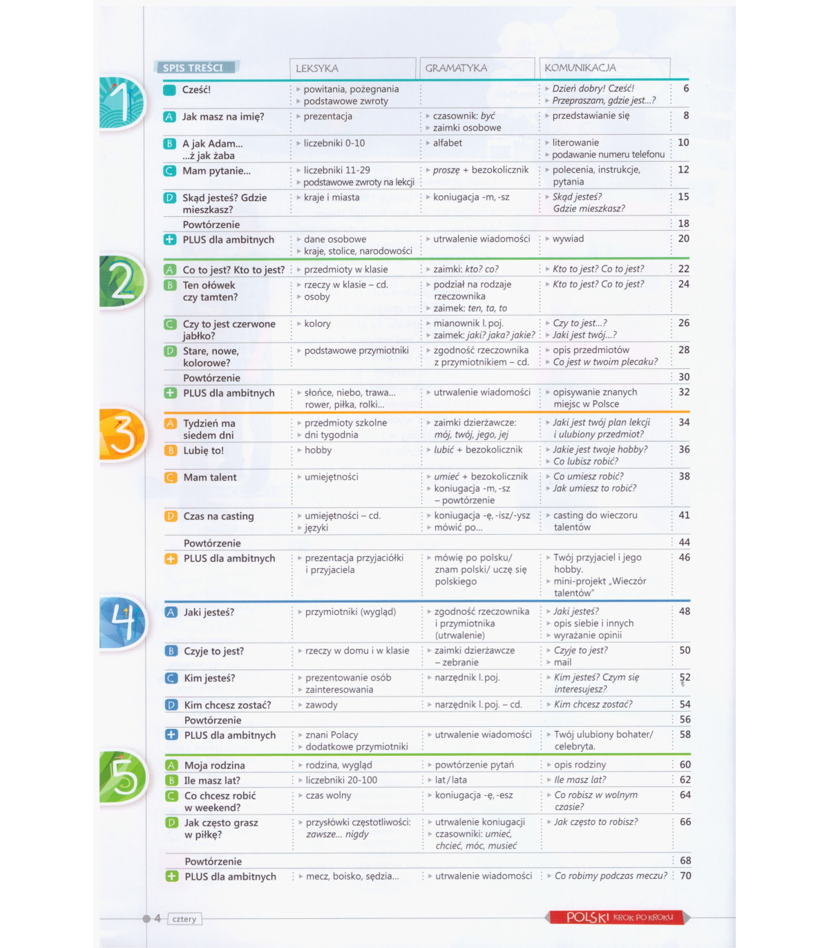 Ciekawe, motywujące i pełne humoru lekcje bazują na właściwych proporcjach między gramatyką, słownictwem oraz doskonaleniem wymowy i umiejętności komunikacyjnych. Od samego początku skupiają się tylko na języku polskim, dzięki czemu zachęcają młodych ludzi do mówienia i myślenia wyłącznie w tym języku.