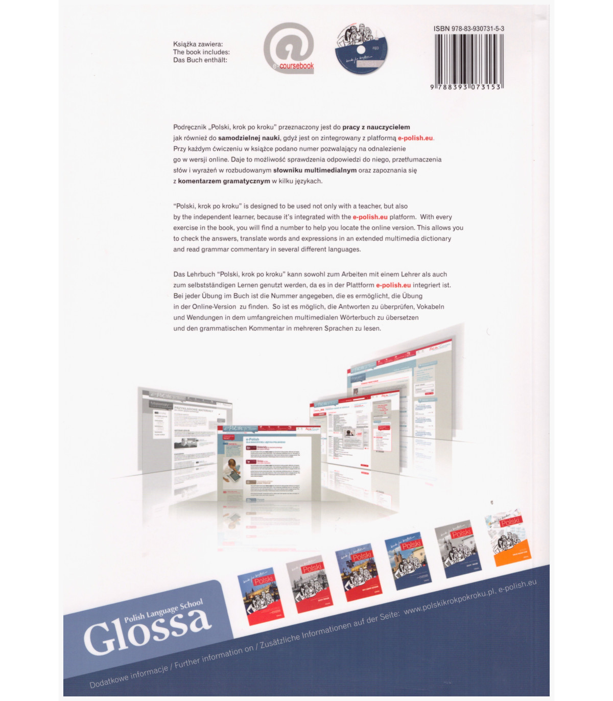 Seria „POLSKI krok po kroku” od początku nauki zanurza studentów w języku polskim i mobilizuje do mówienia. Jej atutem są przejrzyste tabele gramatyczne, intuicyjne wyjaśnianie zagadnień gramatycznych w dialogach, bogactwo leksyki oraz dobra jakość i naturalne brzmienie nagrań. Atrakcyjna szata graficzna, pomyślana została tak, by nie tyle zdobić, co stwarzać nowe okazje do mówienia. Seria doskonale sprawdza się tak w grupach, jak i na zajęciach indywidualnych. Z powodzeniem może być wykorzystywana na kursach intensywnych w szkołach językowych, a także na kursach semestralnych prowadzonych na uczelniach czy w szkołach polskich za granicą.