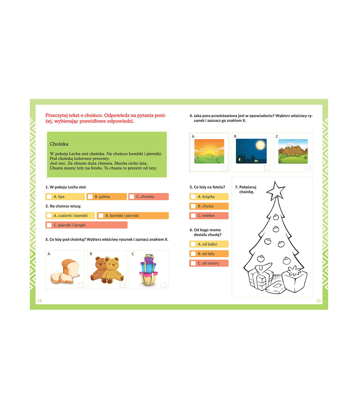Zadania oparte są na prostych tekstach, na znanych i popularnych utworach literackich (baśniach i wierszach) oraz na codziennych sytuacjach, dzięki czemu dzieci będą miały okazję zapoznać się ze znaczeniem pocztówki z wakacji czy plakatu teatralnego i przekonać się w praktyce, że umiejętność rozumienia tego, co czytają, jest potrzebna i przydatna na co dzień. Część zadań przedstawiona jest w formie obrazkowej, co sprawia, że książka staje się przyjemniejsza i zabawniejsza dla małego odbiorcy.