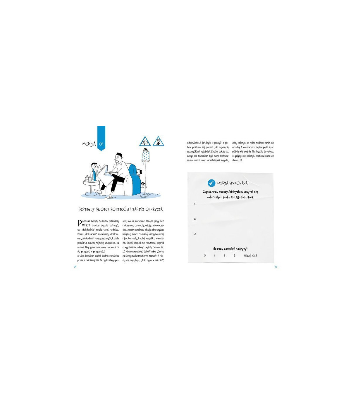 Czy umiałbyś żyć jak dorosły? Potrafisz wymienić żarówkę, zaplanować podróż, poruszać się samodzielnie komunikacją, a może umiesz zmienić oponę w samochodzie? Jeśli jeszcze nie, to nic straconego – czeka na ciebie 50 sekretnych misji, których wypełnienie pomoże ci odnaleźć się w tajemniczym świecie dorosłych, a może nawet zyskać ich uznanie!