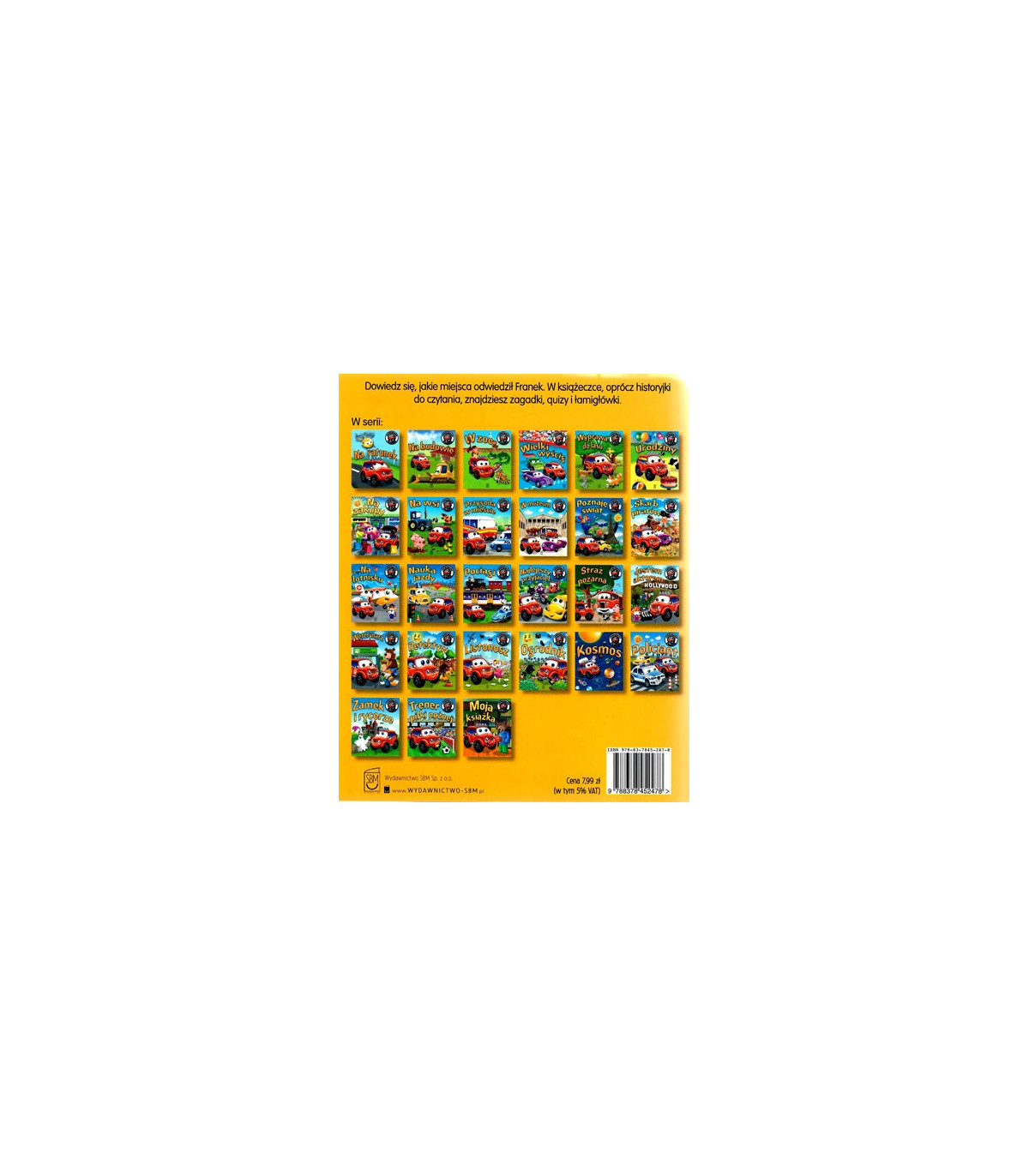 Poczytaj o sympatycznym czerwonym samochodziku i jego przyjaciołach. Dowiedz się, jakie miejsca odwiedził Franek podczas podróży po Polsce. W książeczce, oprócz historyjki do czytania, znajdziesz zagadki, quizy i łamigłówki.
