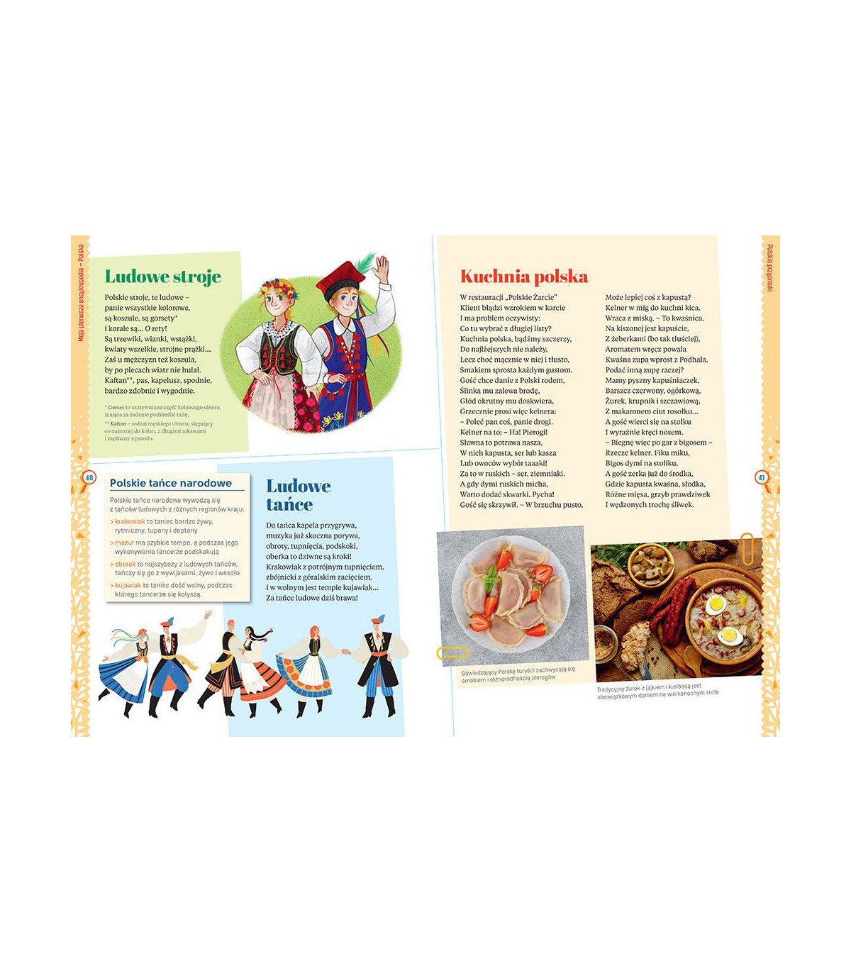 Moja pierwsza encyklopedia - Polska jest przeznaczona dla przedszkolaków i uczniów pierwszych klas szkoły podstawowej. W książce dziecko znajdzie rymowane wiersze oraz ważne wiadomości i mnóstwo ciekawostek, które uzupełniają wiedzę z konkretnego tematu. Kolorowe ilustracje zaciekawiają i zachęcają do czytania. Całość tworzy różnorodną i jednocześnie uporządkowaną wiedzę o naszej ojczyźnie, która na pewno przyda się w szkole. Ponadto encyklopedia z pewnością zainspiruje dziecko do zadawania pytań na temat Polski i stanie się punktem wyjścia do ważnych i rozwijających rozmów.