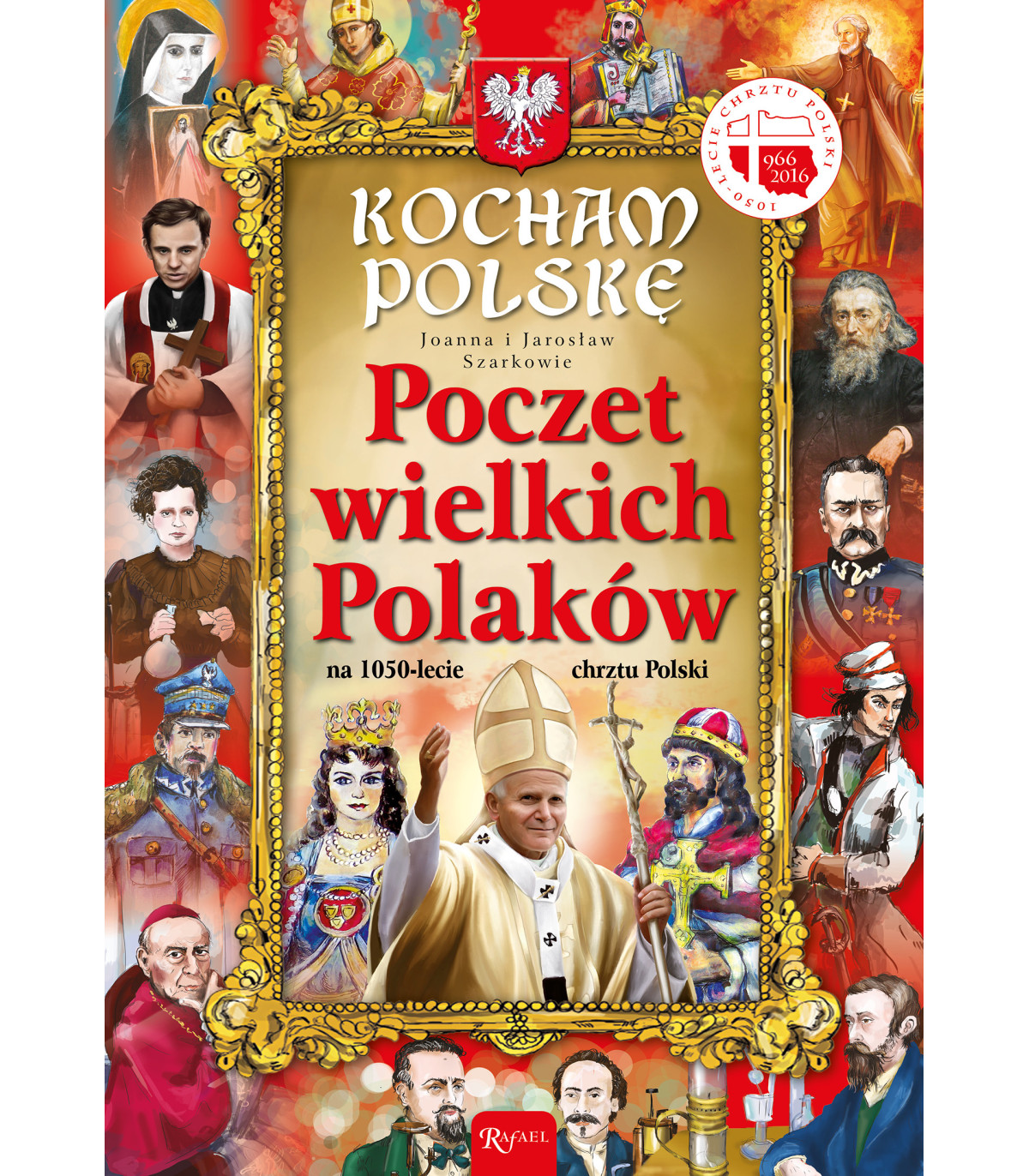 Bestsellerowa kolekcja "Kocham Polskę" to zaproszenie do podróży po Polsce i do poznania jej niezwykłych dziejów. Dzięki wysokim walorom edukacyjnym to wspaniałe kompendium wiedzy o naszym kraju może się stać dla przyszłego pokolenia znakomitą szkołą patriotyzmu. Poczet wielkich Polaków przygotowany specjalnie na 1050-lecie chrztu Polski jest leksykonem wybitnych postaci tworzących naszą historię.Książka prezentuje sylwetki prawdziwych patriotów - od najdawniejszych dziejów, aż po współczesność - z których każdy Polak może być dumny. Wielcy Polacy to ci, dzięki którym żyjemy w wolnym i pięknym kraju - naukowcy, bohaterowie bitew, kapłani, biskupi, królowie i polski papież - bez nich nie byłoby Polski. Postacie nietuzinkowe, uczestnicy niesamowitych przygód - nieraz tajemniczych i do dziś zagadkowych. Oni dokonywali niewiarygodnych czynów, odznaczali się odwagą, bohaterstwem, a także mądrością i talentem. Zapoznając dzieci z życiorysami naszych wielkich przodków, oddajemy im hołd, a przyszłe pokolenie uczymy miłości do ojczyzny.
