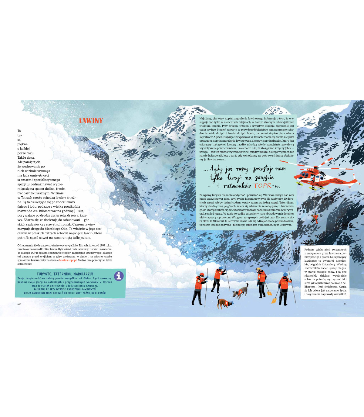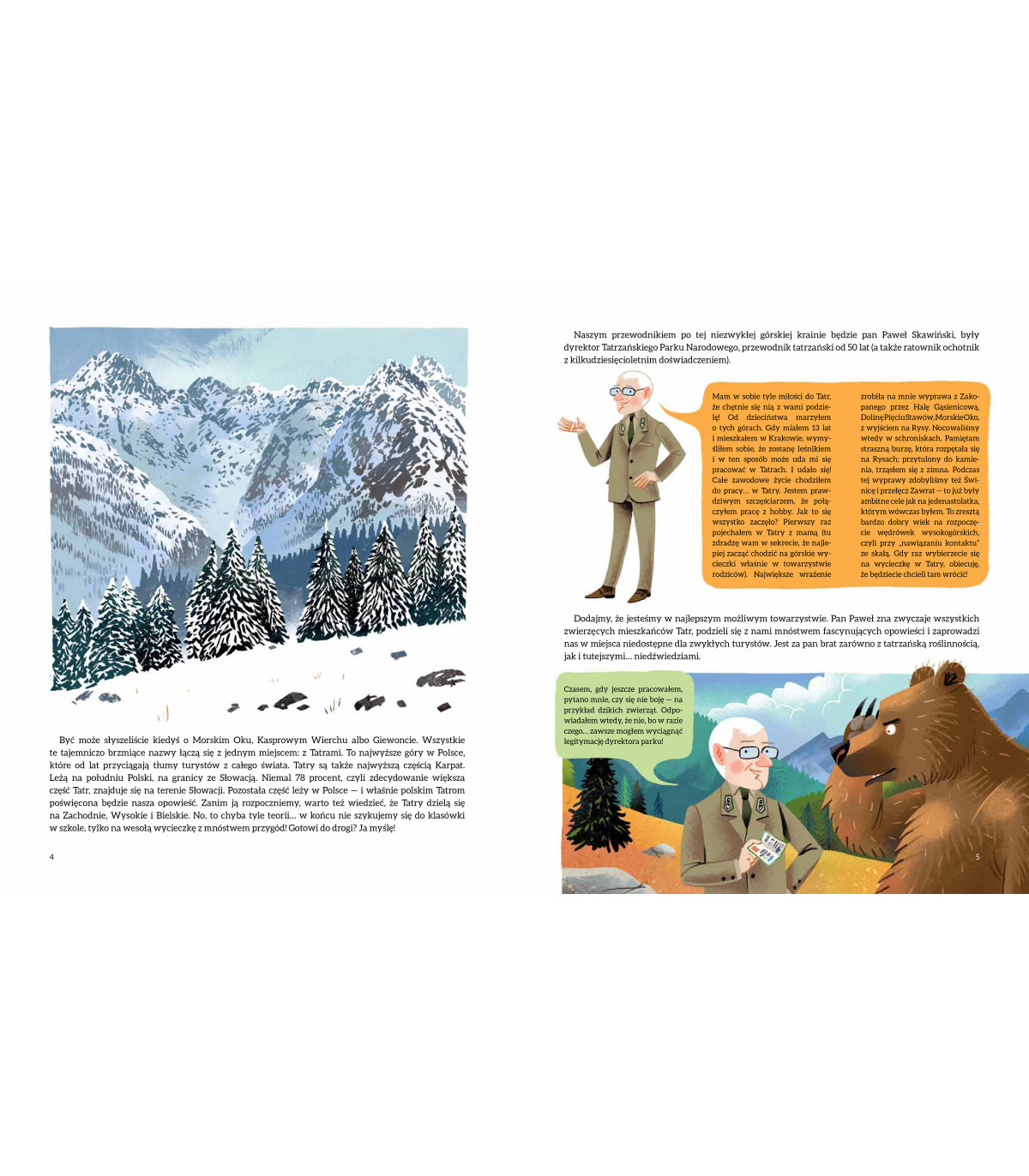 Teraz czas na was. Zapraszamy na wyprawę w najsłynniejsze polskie góry, do ostępów leśnych, jaskiń i góralskich chat. Spotkacie wilki, rysie, kozice, świstaki, a nawet niedźwiedzie. Dowiecie się, jak zachować się na szlaku. Skosztujecie góralskich specjałów. Poznacie szczyty, doliny, stawy i potoki. I nie bójcie się, bo z takim przewodnikiem, jak Paweł Skawiński, który jest leśnikiem, taternikiem, ratownikiem górskim, instruktorem narciarskim – będziecie przygotowani na każdą okazję.