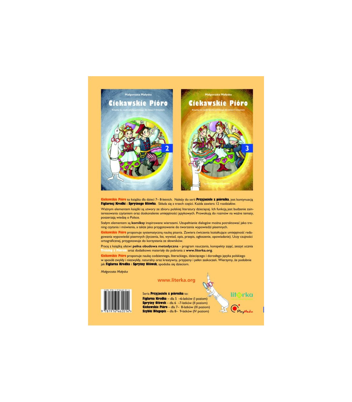 Pracę z książką ułatwi pełna obudowa metodyczna – program nauczania, konspekty zajęć, zeszyt ucznia Trening z Piórem oraz dodatkowe materiały do pobrania z www.literka.org.