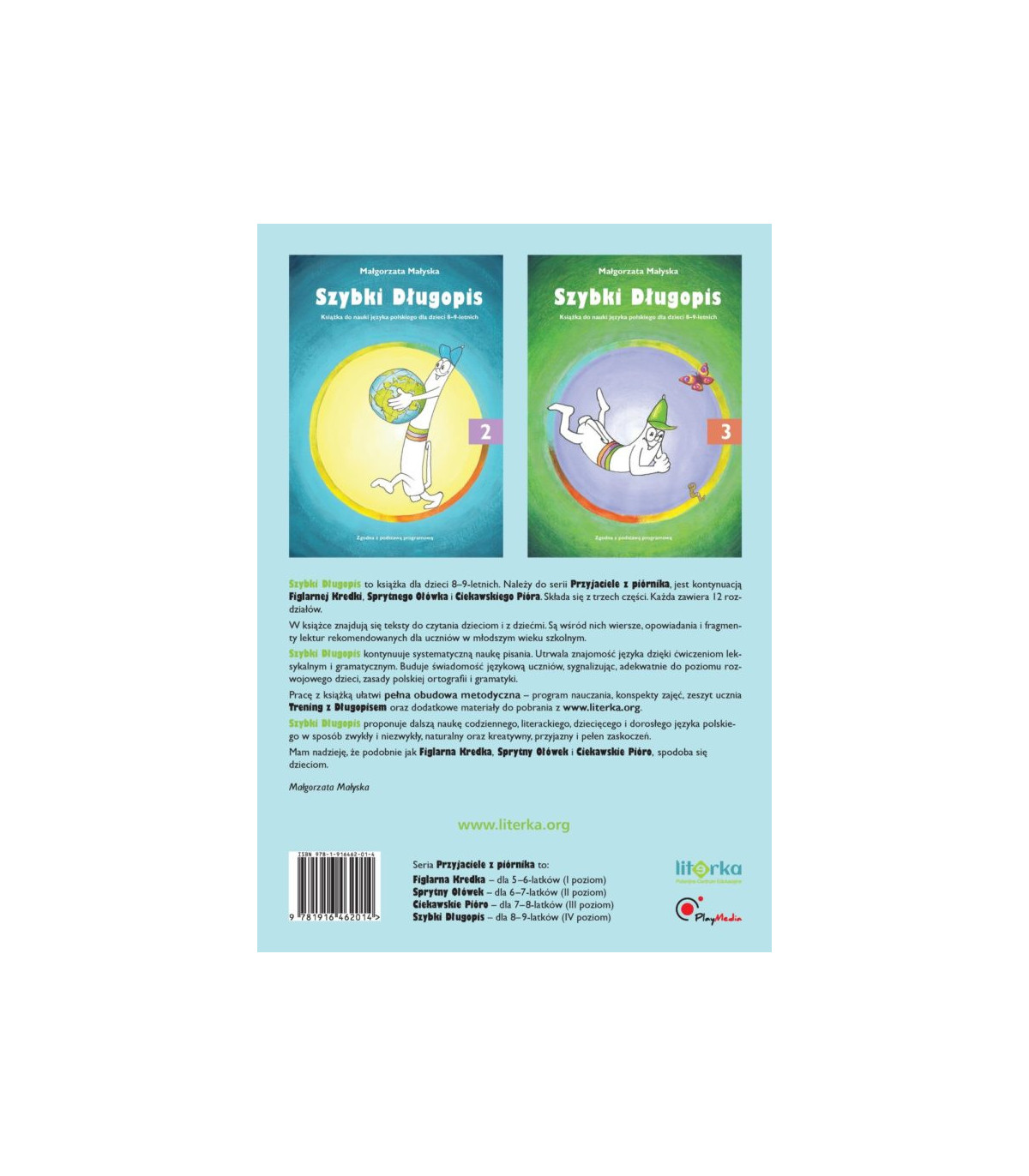 Tytułowy bohater książki – „Szybki Długopis” to specjalista od języka polskiego. Pomaga w szybkim opanowaniu umiejętności językowych. Przede wszystkim wspiera w lepszym rozumieniu języka potocznego i literackiego. Wykorzystuje do tego ilustracje, symbole, pytania. Zachęca do czytania, pisania i szybkiego zapamiętywania polskich słówek ich poprawnego graficznego zapisu. Wspiera uczniów w opanowaniu sprawności wypowiadania się w języku polskim w sposób ustny i pisemny.