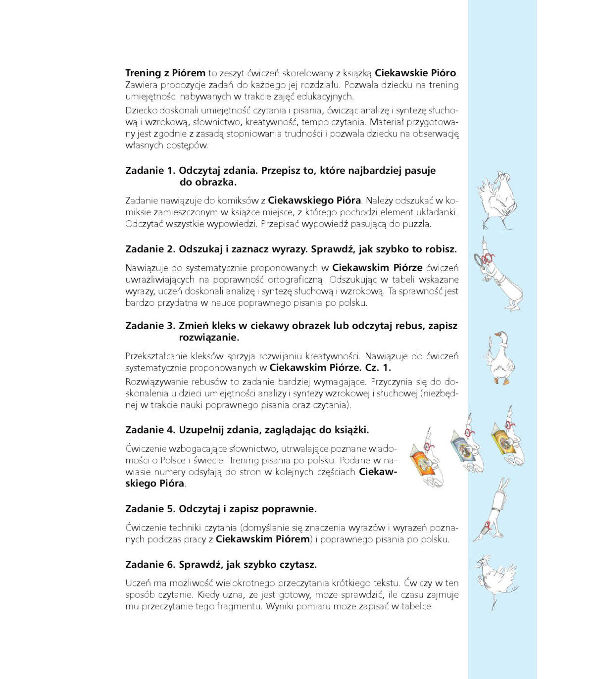 Zawiera propozycje zadań do każdego jej rozdziału. Pozwala dziecku na trening umiejetności nabywanych w trakcie zajęć edukacyjnych.
