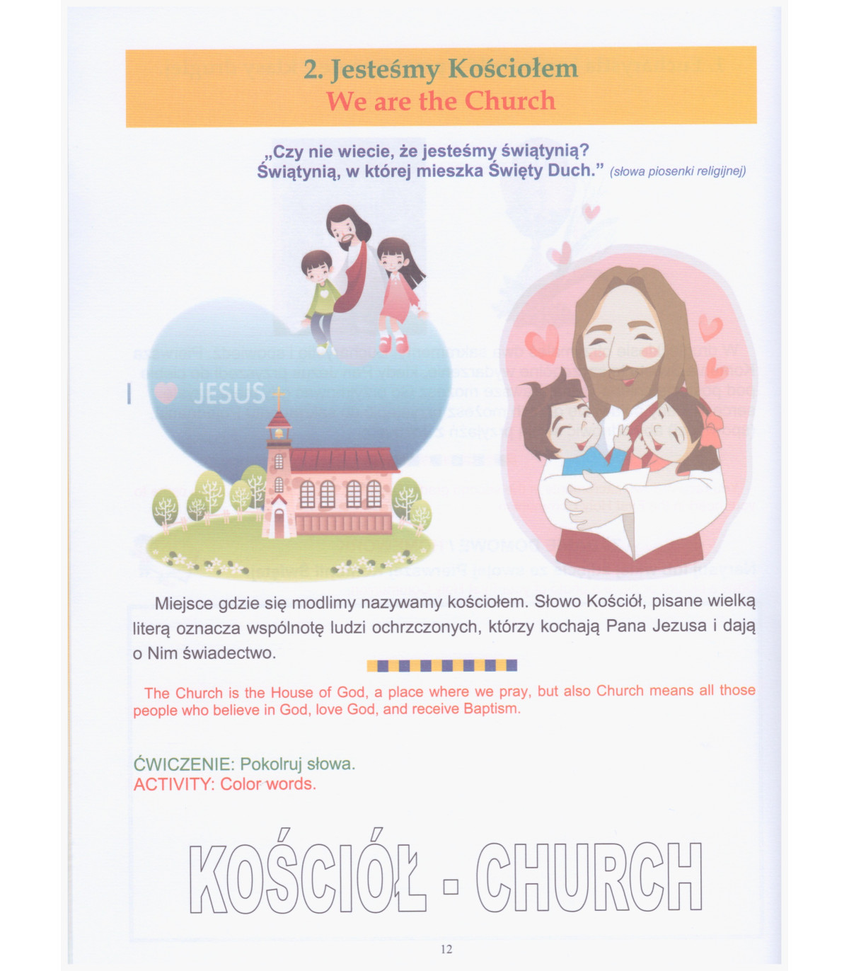 Podręcznik został napisany po polsku, z częściowym tłumaczeniem na angielski, co dobrze sprawdza się w pracy z dziećmi, dla których język polski jest językiem obcym. Język poleceń jest prosty i zrozumiały dla dzieci, a zagadnienia wiary i katechezy wprowadzane są w sposób przystępny, poprzez ilustracje, kolorowanki, gry i zabawy.