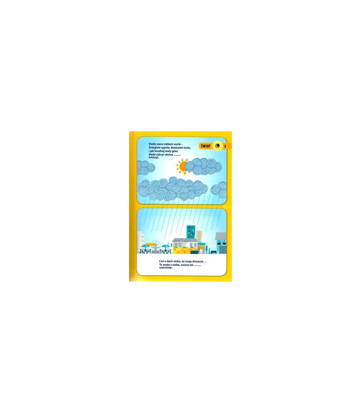 Zabawne wierszyki-zagadki w dowcipny sposób przekazują cenne informacje o otaczającym nas świecie: porach roku, zwierzętach, pojazdach, owocach, warzywach. Każdemu wierszykowi towarzyszy wesoła ilustracja, a odpowiedź na zagadkę można poznać za pomocą lusterka!