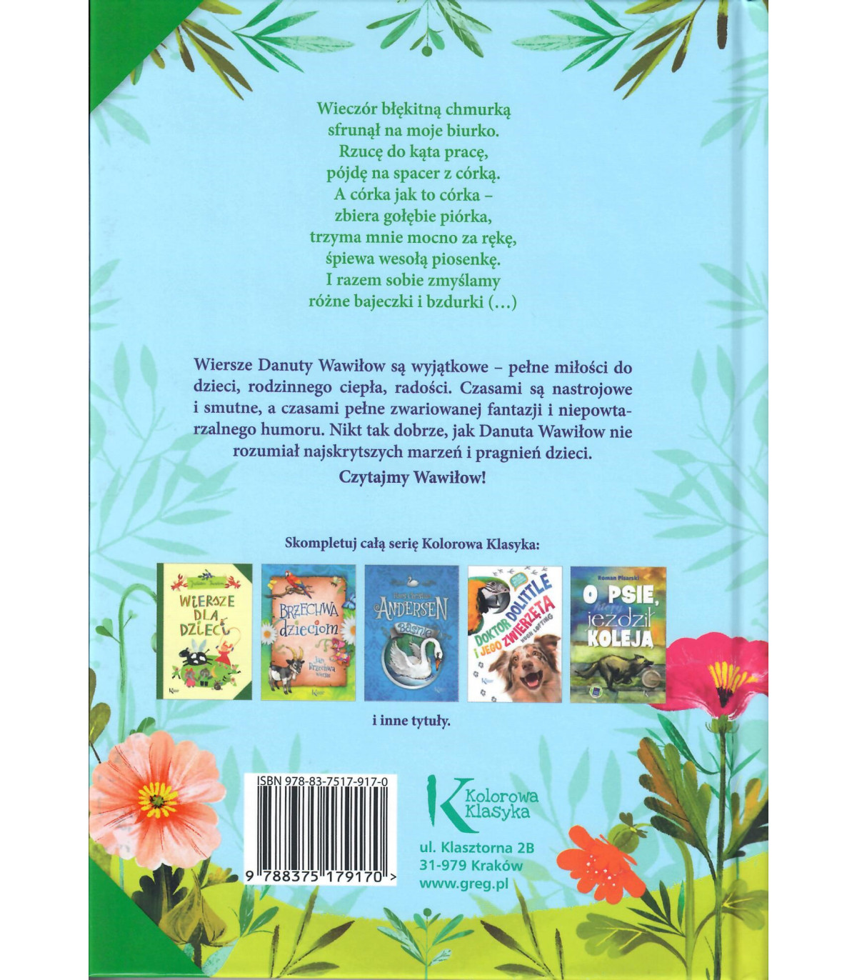 Wiersze Danuty Wawiłow wpisują się w znany od lat kanon literatury dla dzieci. Nic dziwnego - poruszają najważniejsze dla dzieci tematy, pełne są zwariowanej zabawy, uśmiechu i radości, ciepła i bliskich relacji z rodzicami. Nie jest to jednak świat przesłodzony, sztuczny - utwory dotykają też różnych problemów, są nastrojowe, liryczne, czasem smutne, a niekiedy zaskakują i skłaniają do refleksji.