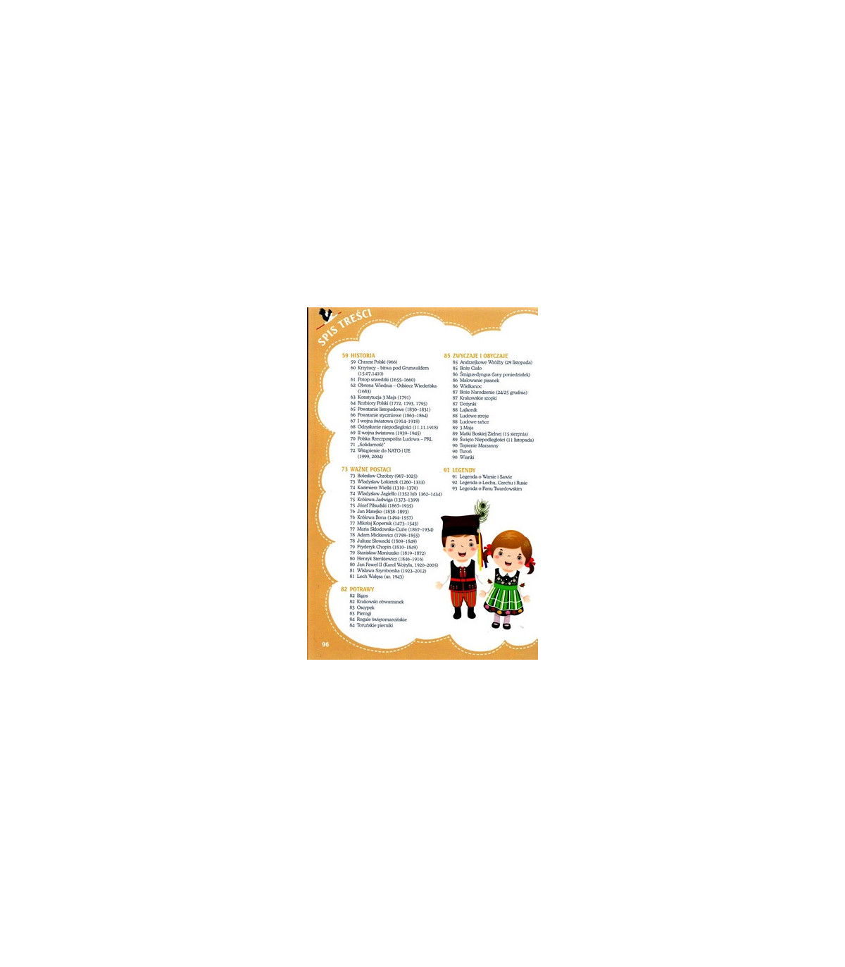 W drugiej części książki znajdują się wiersze dotyczące ważnych polskich postaci historycznych i najistotniejszych w naszej historii wydarzeń. Całość zamykają najważniejsze legendy - również wierszem. Tekstom towarzyszą zdjęcia i kolorowe rysunki.