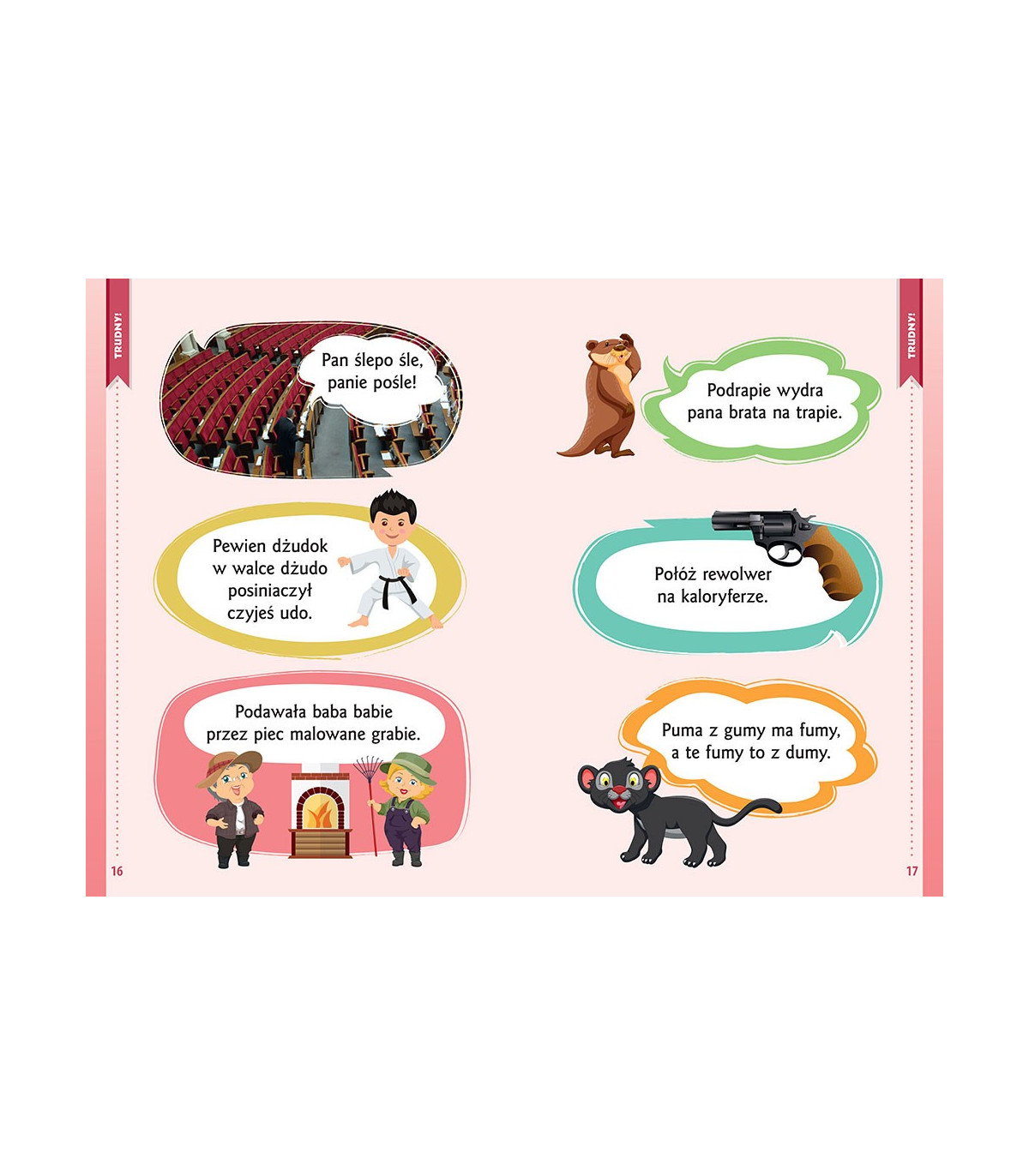 Te łamańce językowe są idealne do ćwiczenia prawidłowej dykcji i dbałości językowej. Zabawy tego typu są polecane przez wychowawców i logopedów. Książeczka zawiera skalę trudności, która pozwala na sprawdzenie swoich umiejętności oraz na rywalizację, kto jest prawdziwym mistrzem języka!