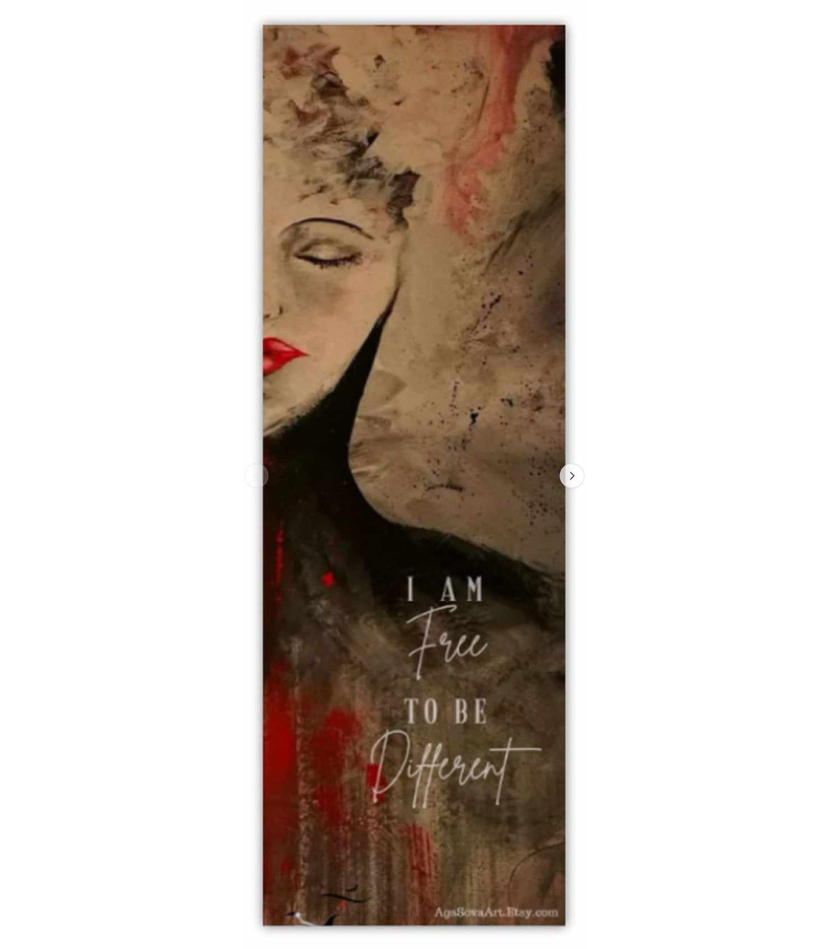 Drukowana zakładka z inspirujacą sentencją * ''I am love" i "I am free to be different". Na zakładce fragmenty obrazów Agnieszki Sovy.